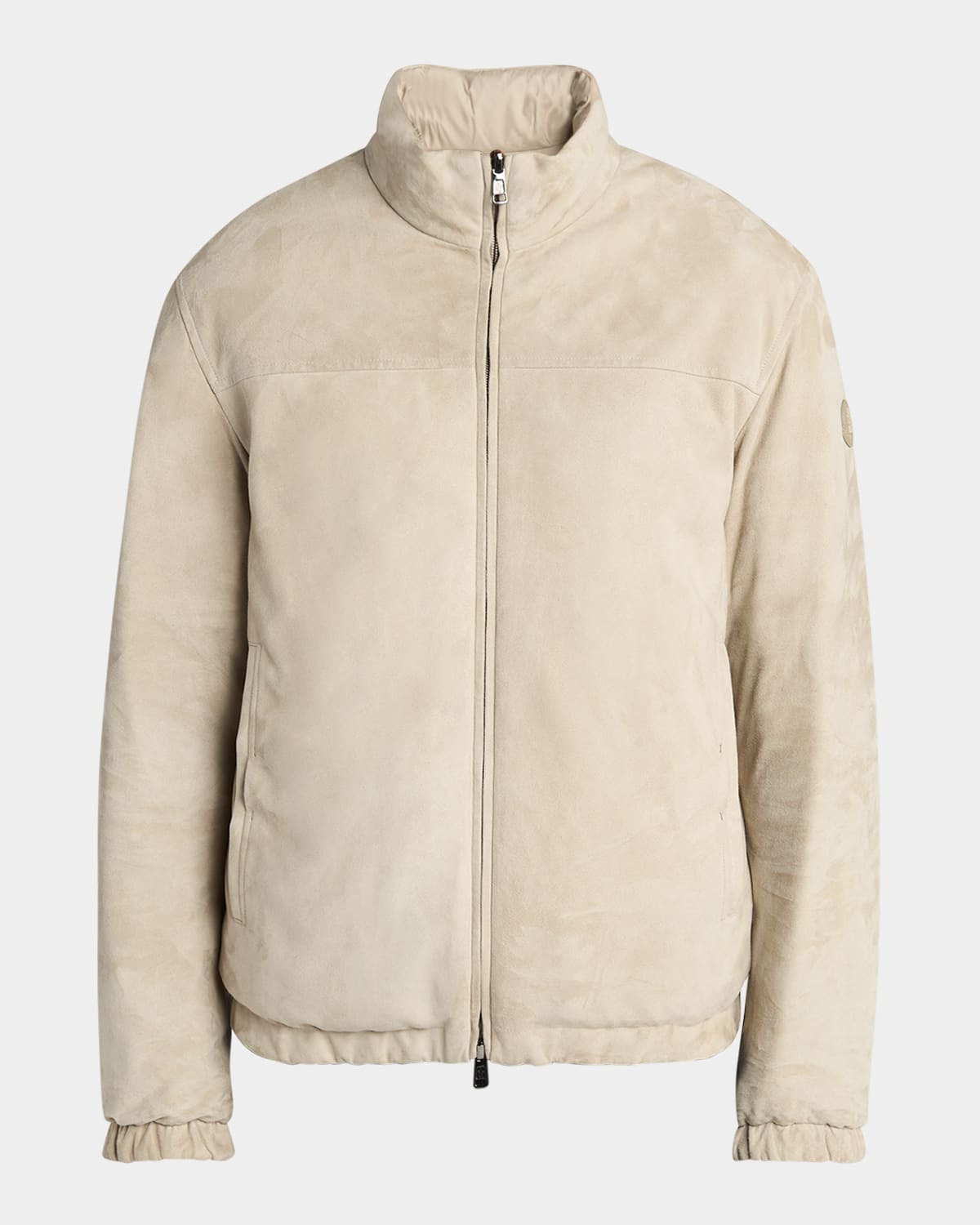 - This reversible jacket from Moncler is meticulously designed to match your mood. Choose the smart suede of the "Cernay" or reverse the jacket to expose the down/feather channel quilt. - Stand collar - Exposed two-way zipper - Logo patch on the left arm - Side welt pockets on the front and reverse - Cinched cuffs and hem - Leather - Reverse: Polyester - Professional cleaning recommended - Made in Romania
