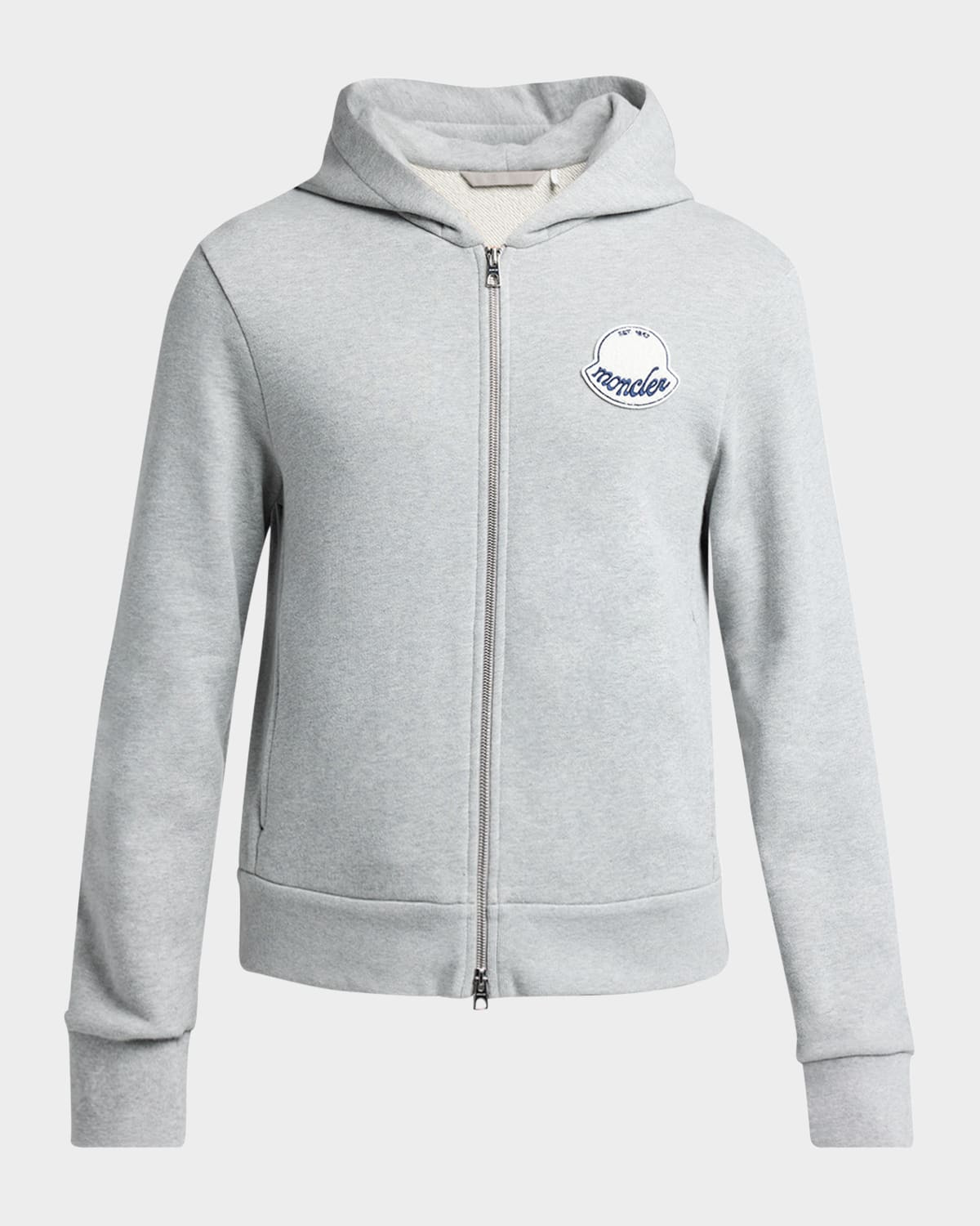 - Moncler hoodie in cotton highlighted with a chenille logo patch on the chest - Signature logo emblem on the left sleeve - Hooded neckline - Two-way zip front - Side zip pockets - Long sleeves - Banded cuffs and hem - Cotton - Lining: Cotton - Machine wash cold - Imported