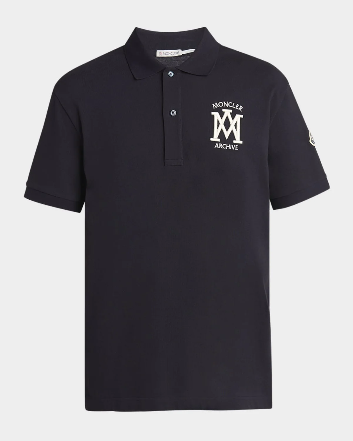 - Moncler polo shirt in comfortable cotton elevated with the archive logo on the chest - Signature emblem on the left sleeve - Shirt collar - Two-button placket - Short sleeves - Ribbed cuffs - Pullover style - Cotton - Machine wash cold - Imported