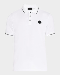 - Moncler polo shirt in cotton featuring contrast tipping - Tonal logo applique on the left chest - Spread collar - Three-button placket - Short sleeves - Pullover style - Cotton - Unlined - Machine wash cold - Imported