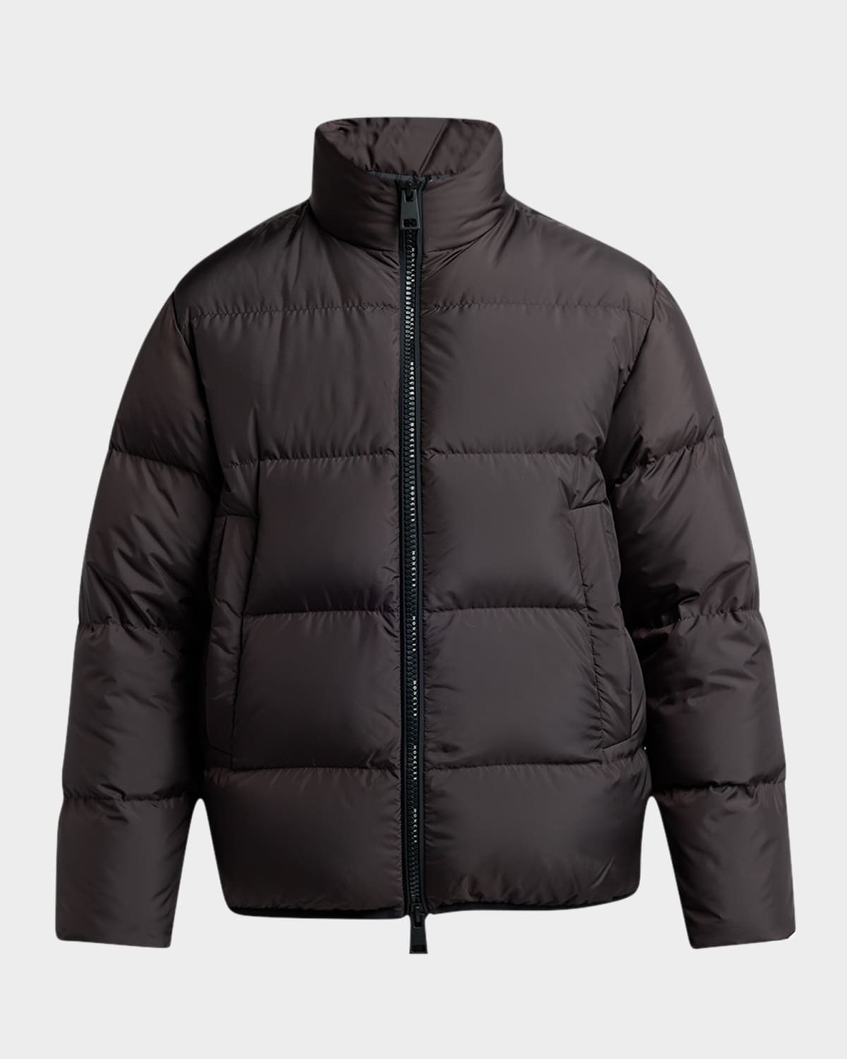 - Moncler quilted jacket with premium down/feather fill utilizing exceptional warmth and lightweight comfort - Stand collar - Two-way zip front - Side welt pockets - Long sleeves - Logo emblem on the left sleeve - Banded hem - Polyester - Professional cleaning recommended - Made in Romania