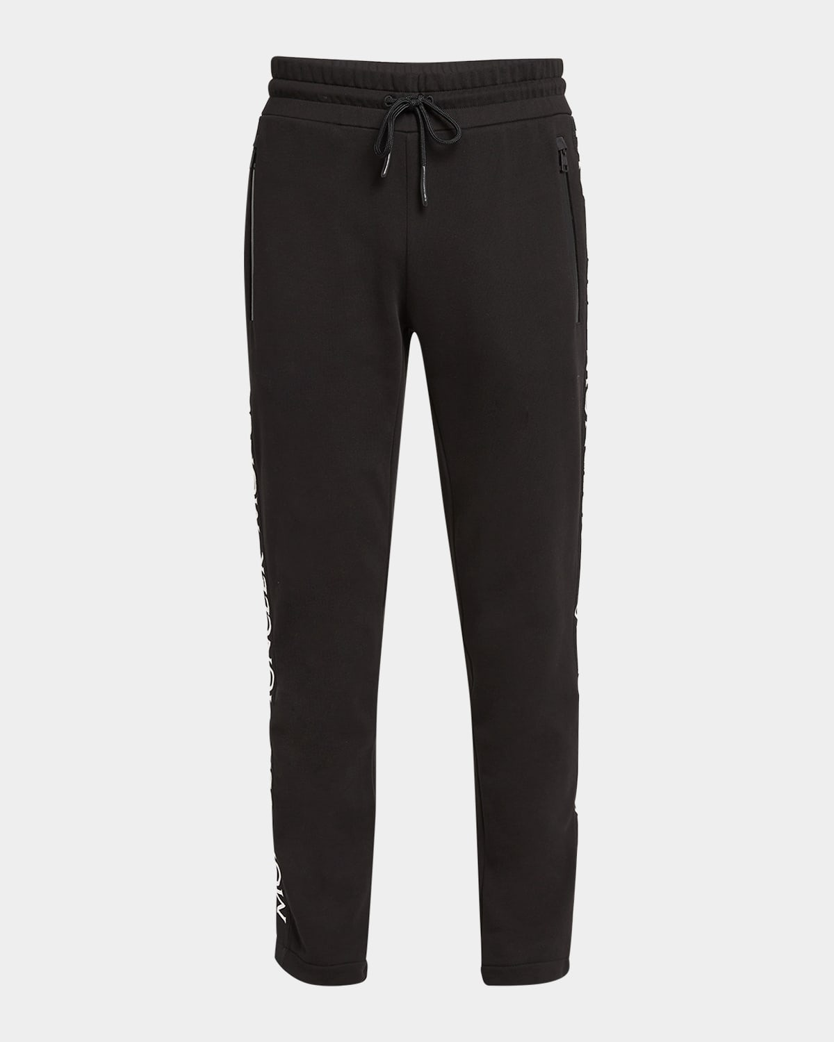 - Moncler fleece sweatpants with tonal hardware - Embroidered logo down sides - Elasticized drawstring waist - Zip pockets - Full length - Slim fit - Cotton - Unlined - Machine wash cold - Imported - Model is 6'1"/185cm.