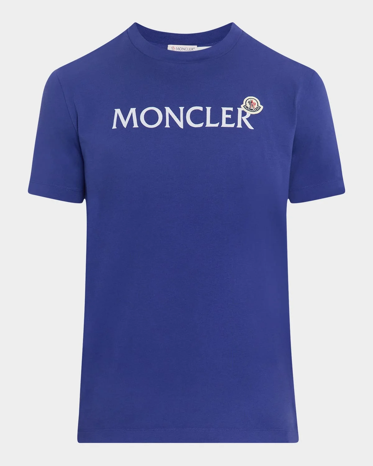 - Moncler T-shirt crafted from organic cotton jersey - Flocked logo lettering with felt patch - Crew neckline - Short sleeves - Regular fit - Pullover style - Imported