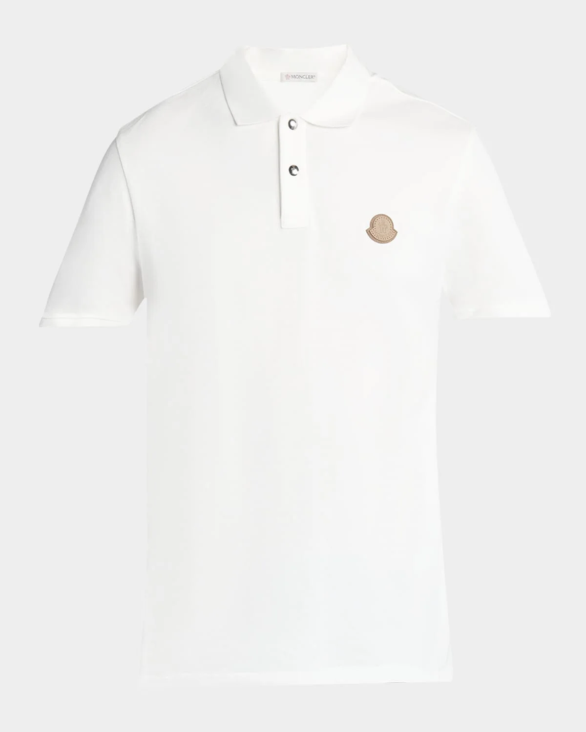 - Moncler polo shirt in breathable cotton defined by a leather logo emblem on the chest - Spread collar - Double-snap placket - Short sleeves - Banded cuffs - Straight hem - Pullover style - Cotton/leather - Lining: Polyester - Machine wash cold