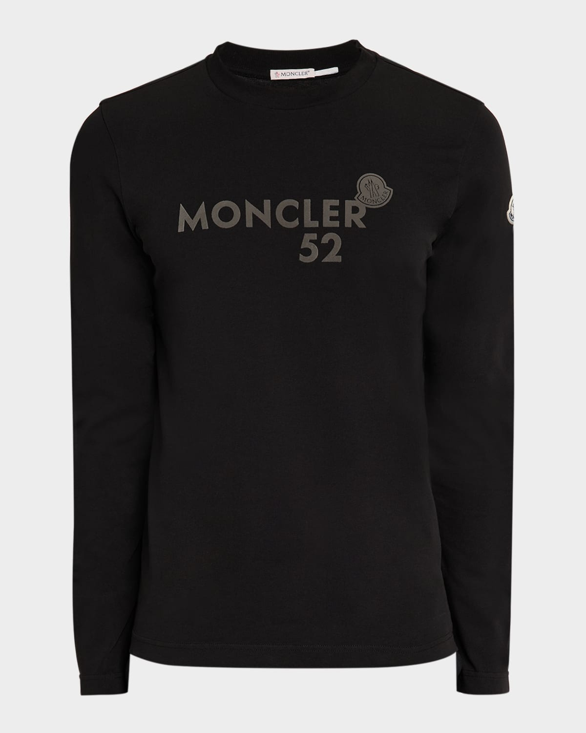 - Moncler T-shirt showcasing the iconic logo script on the front - Crew neckline - Left sleeve logo emblem - Long sleeves - Pullover style - Slim fit - Cotton - Machine wash cold - Imported