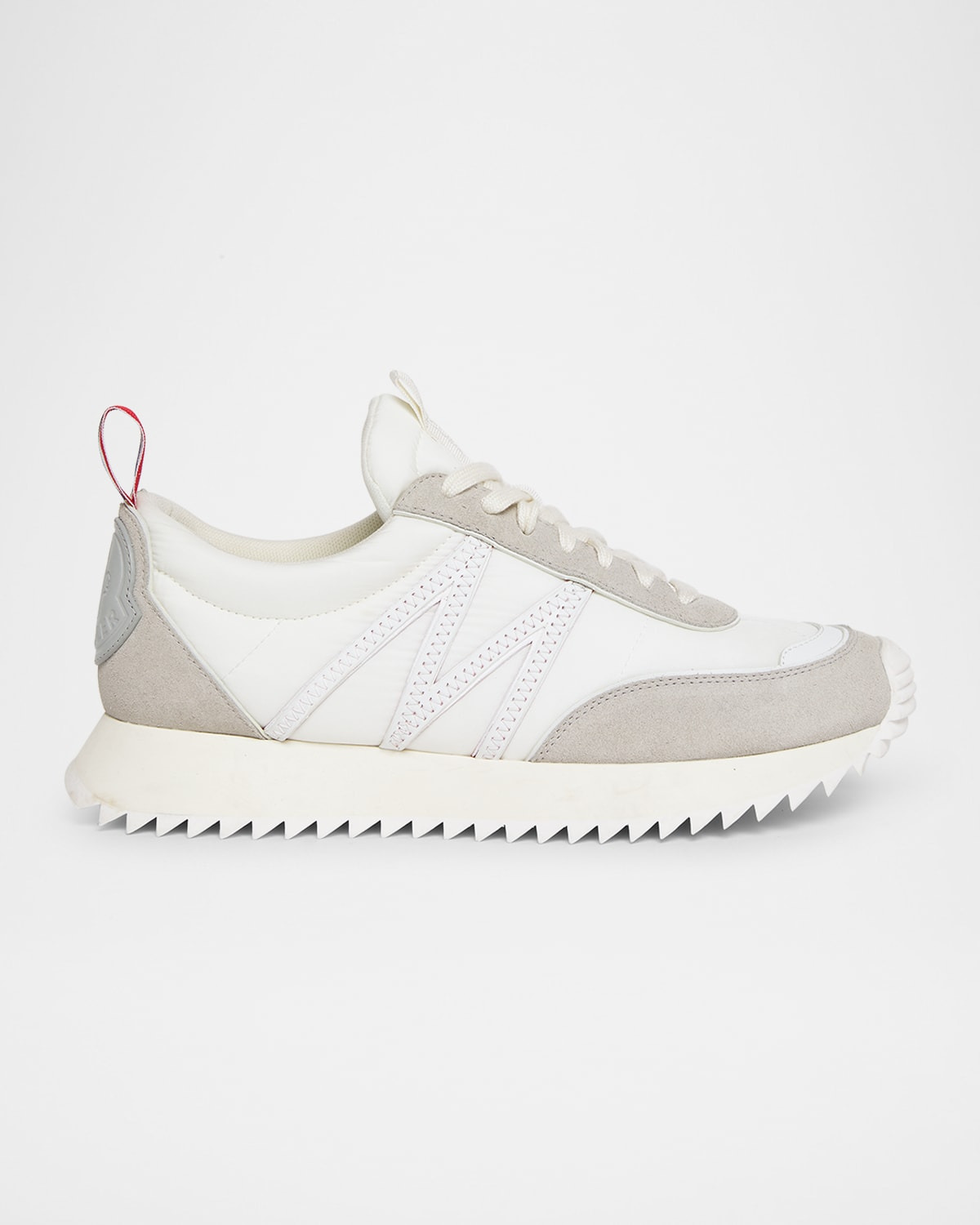 - Moncler "Pacey" runner sneakers in nylon and suede - Lightweight and flexible, the Pacey is the ultimate city sneaker - Features a graphic M-logo on the side - Flat heel - Reinforced round toe - Lace-up vamp - Tongue with tonal logo - Padded collar - Fabric lining - Stripe grosgrain pull tab - Leather logo emblem on the heel - Serrated rubber outsole - Imported
