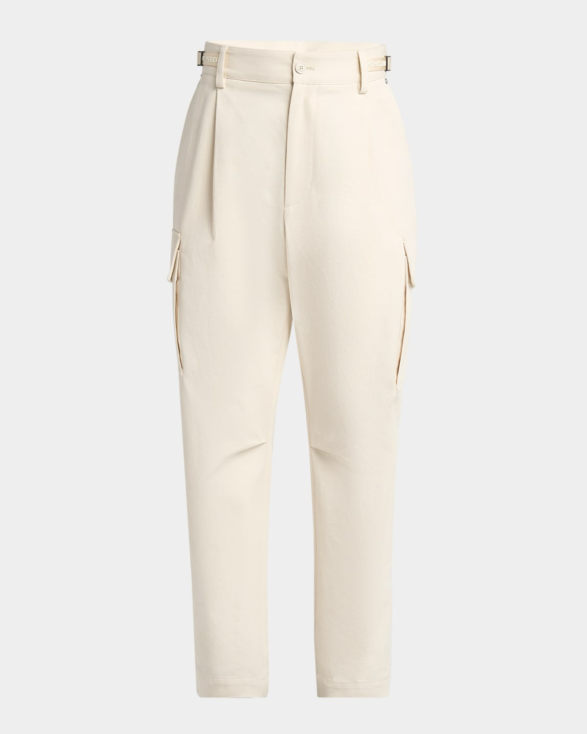 - Moncler trousers in wool accented with functional cargo pockets and a sleek pleated front - Branded waist adjusters - High rise - Side slip pockets - Back flap pockets - Classic fit through tapered legs - Full length - Button-zip front; belt loops - Virgin wool/polyester - Lining: Polyester - Professional cleaning recommended - Made in Bulgaria
