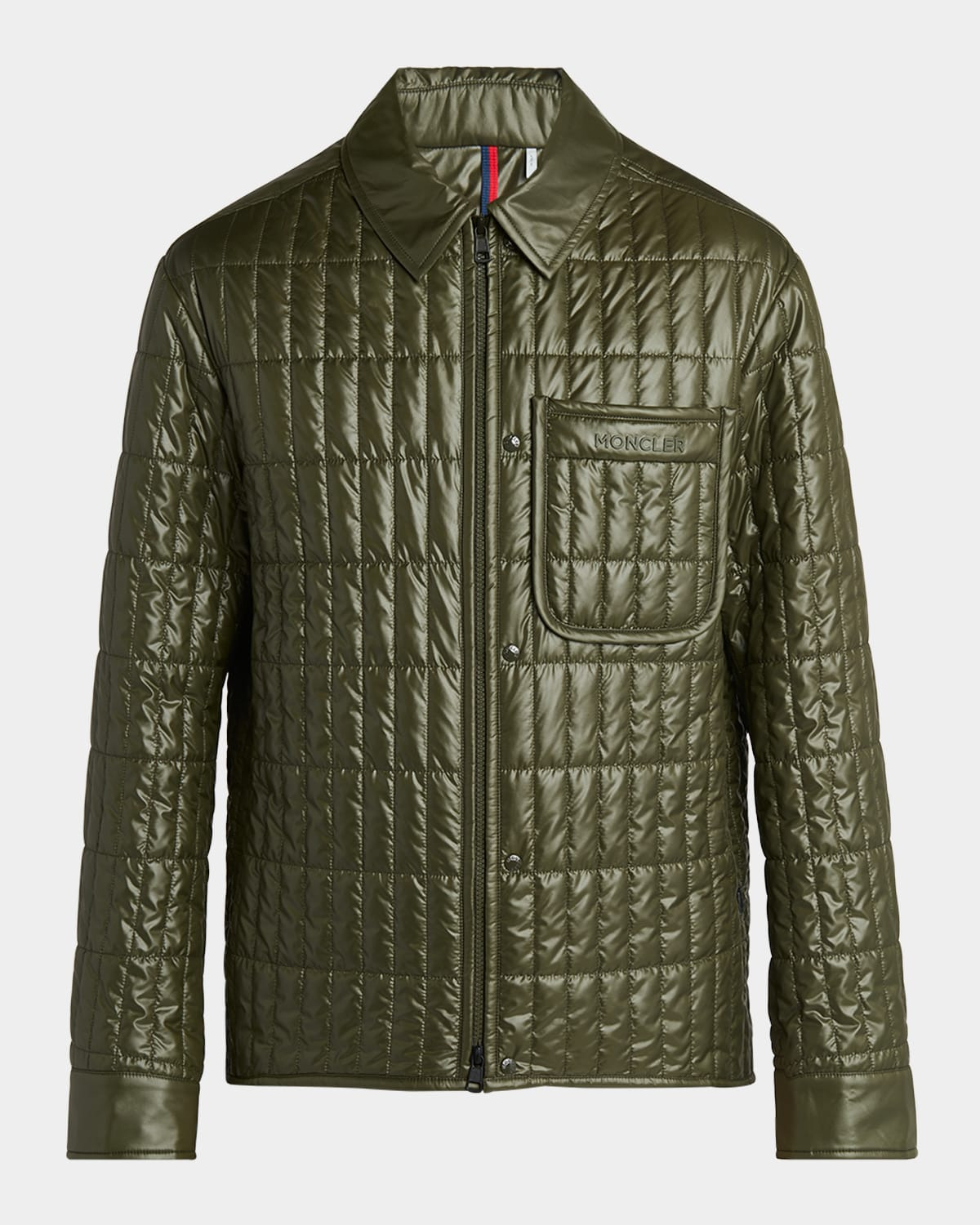 - Moncler shirt jacket in quilted nylon with premium down/feather padding - Shirt collar - Two-way zip front - Chest patch pocket with logo - Hidden side zip pockets - Long sleeves - Snap cuffs - Nylon/polyamide - Lining: Nylon - Made in Italy