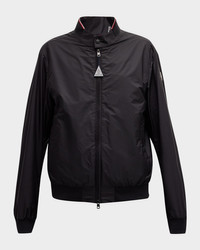 - Moncler "Reppe" solid jacket with tricolor tipped collar - Mock neckline; two-way zip closure - Welt pockets - Long sleeves - Banded cuffs and hem - Nylon - Lining: Nylon - Dry clean - Made in Romania - Model is 6'1"/185cm. - Size Note: Item runs small, consider ordering a size up.