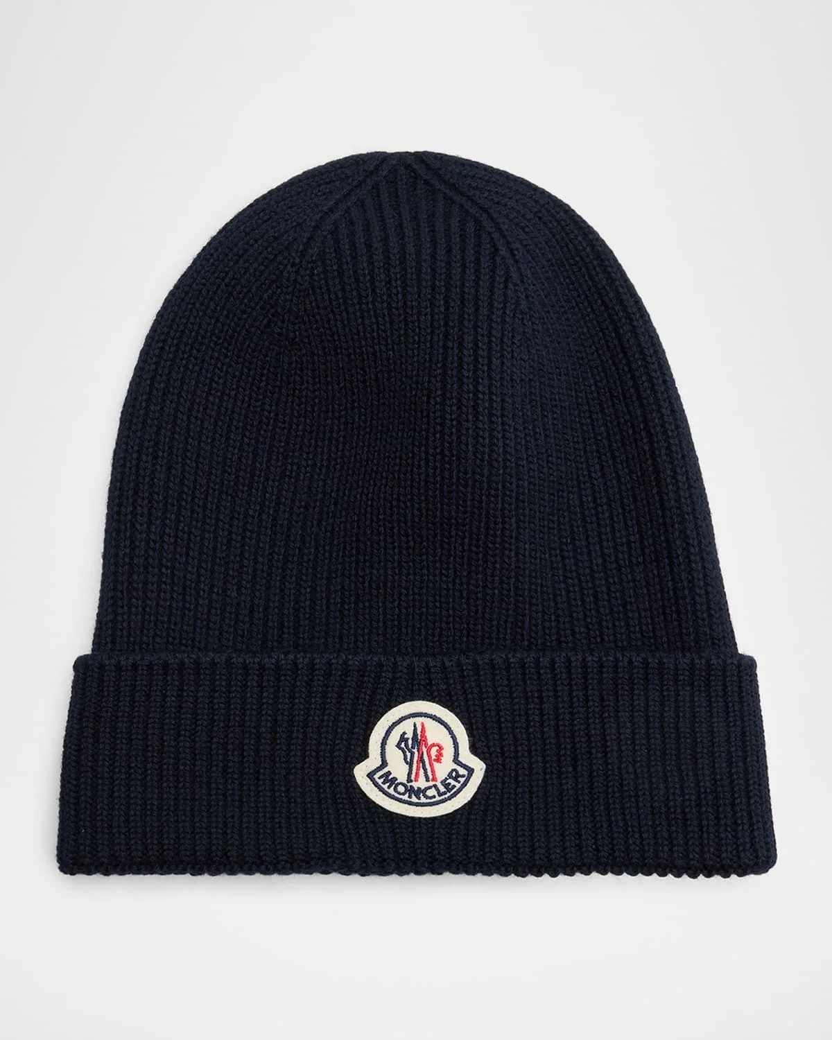 - Moncler beanie hat in ribbed virgin wool for premium warmth - Iconic logo emblem on the front - Virgin wool - Professional cleaning recommended - Made in Italy
