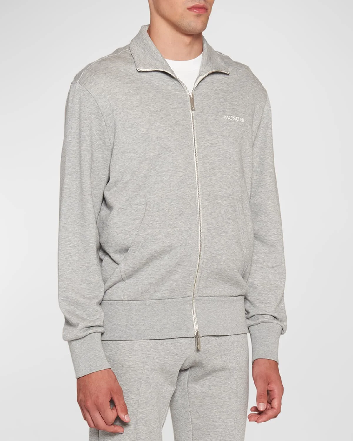 Moncler sweat track jacket Spread collar; zip front closure Split pouch pocket Long sleeves Banded cuffs and hem Cotton Unlined Dry clean Imported
