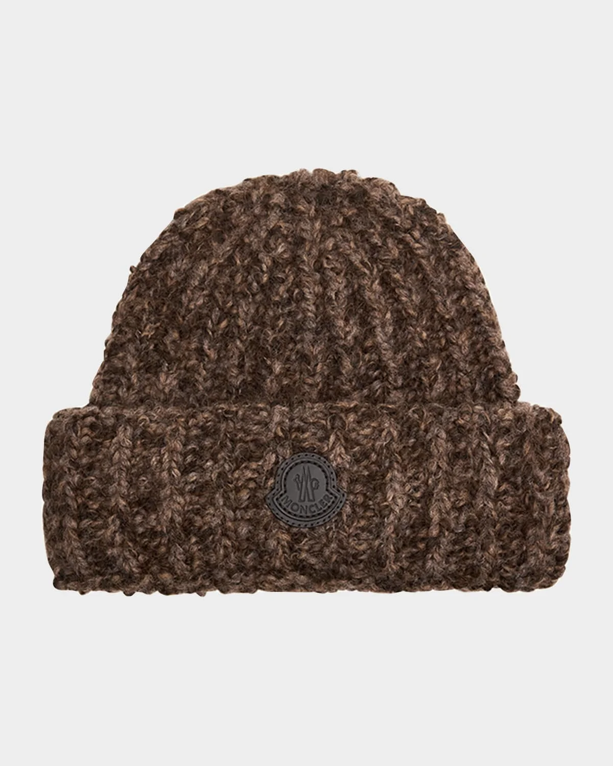 Crafted from a wool and alpaca blend, this heavyknit Moncler beanie is enhanced by a textural effect Round crown Folded cuff Leather logo patch Virgin wool/polyester Professional cleaning recommended Imported