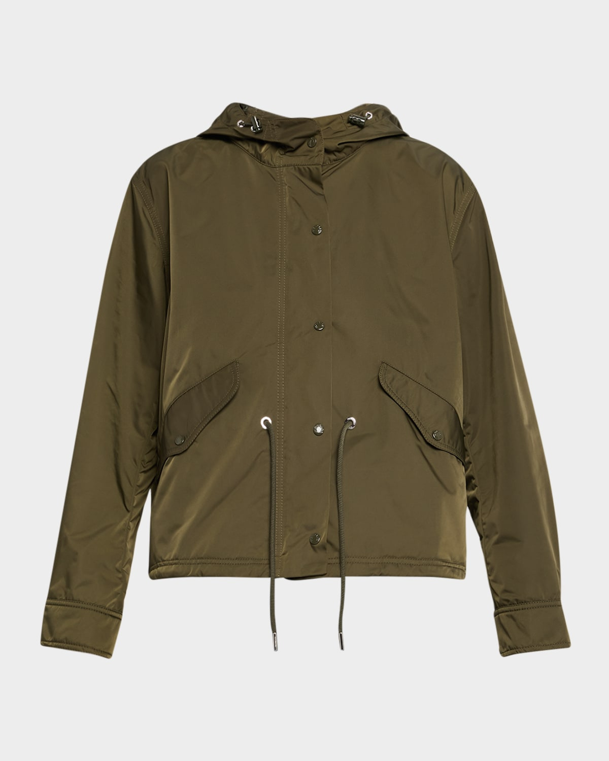 - Moncler "Noizay" lightweight parka crafted from recycled polyester - Breathable, windbreaker - Adjustable drawstring hood - Long sleeves with snap cuffs - Embroidered logo patch at left sleeve - Adjustable waist drawstring - Angled flap pockets with snap closure - Relaxed fit - Shirttail hem with adjustable drawstrings - Two-way zip-front with snap-over placket - Polyester - Lining: Nylon - Hand wash - Imported