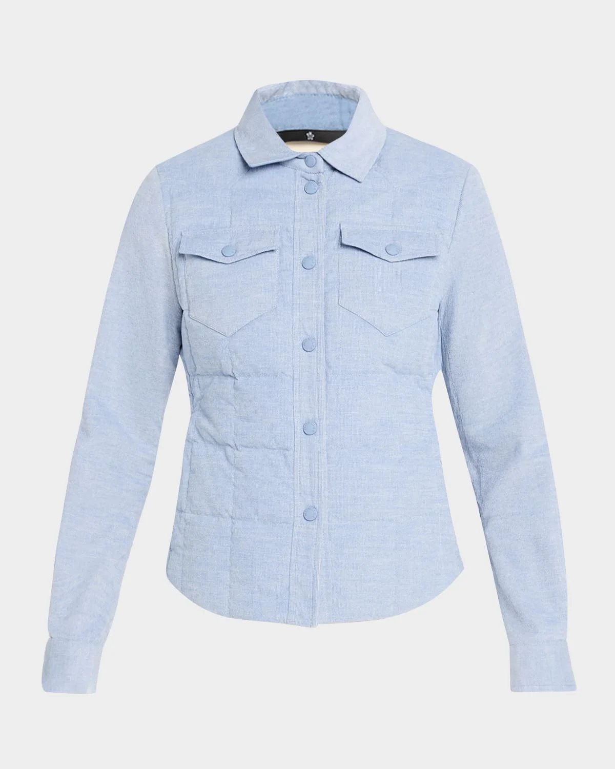 Moncler Grenoble corduroy shirt designed with padded bodice and a detachable carbineer & nbsp; Features a signature embroidered logo patch on the left sleeve & nbsp; Point collar Long sleeves with snap cuffs Dual chest pockets Slim fit Hem sits at the hip Snap-front & nbsp; Cotton Fill: Polyester Machine wash cold Imported SIZE & FITModel measurements: 5 & apos;10" tallModel is wearing a US size 4/Small
