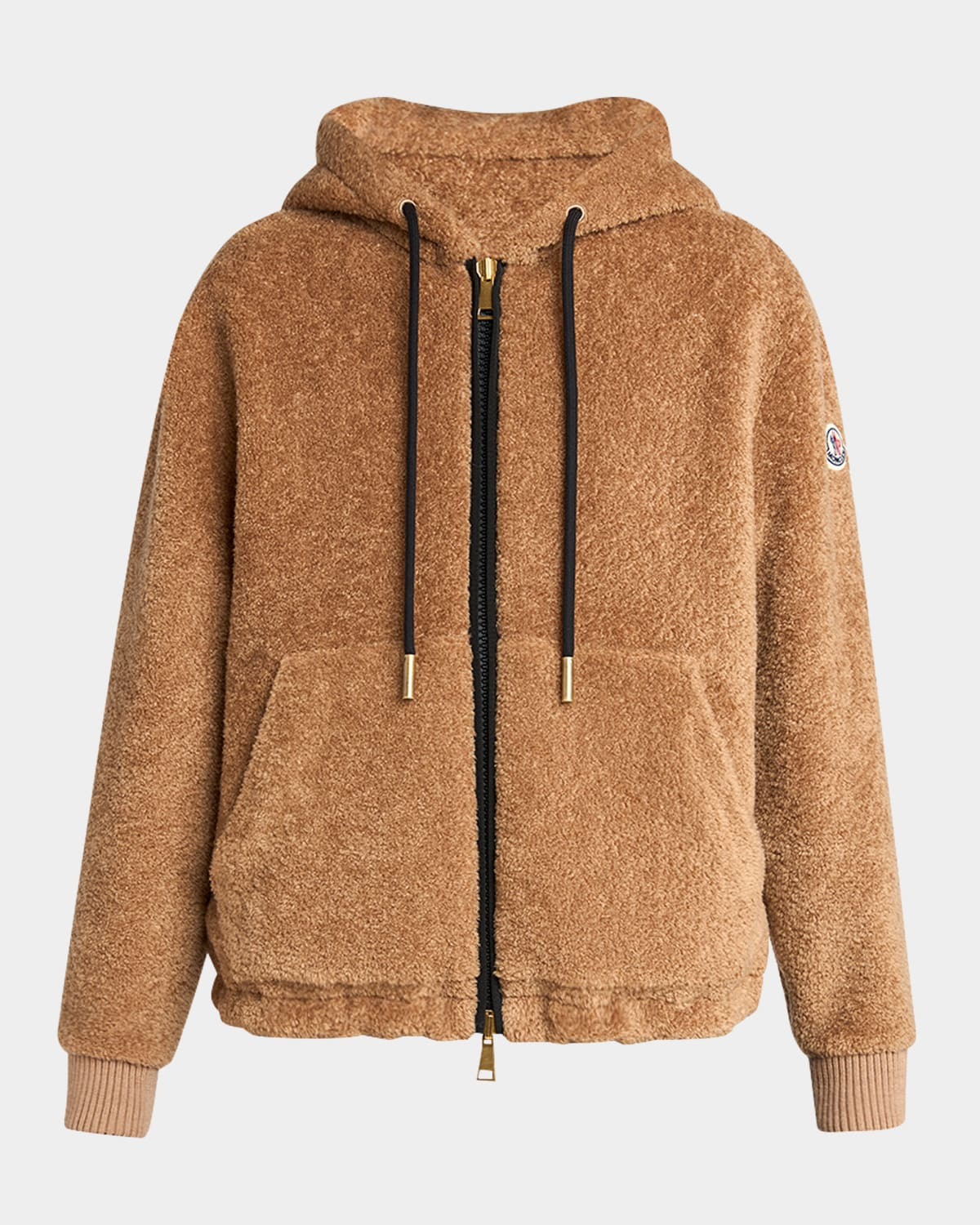 - Moncler faux fur (acrylic) cardigan that reverses to a water-resistant recycled fabric - Drawstring hood - Long sleeves with ribbed cuffs - Signature embroidered logo patch on left sleeve - Side pockets - Classic fit - Hem sits at the hip - Two-way zip-front - Acrylic/cotton - Lining: Nylon - Professional cleaning recommended - Imported
