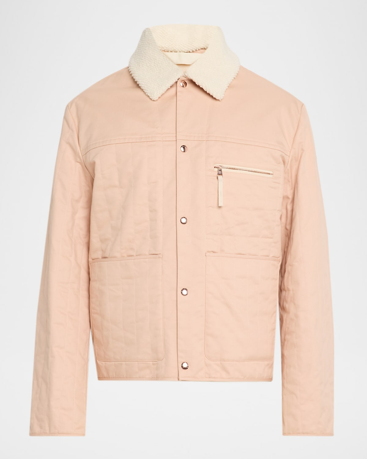 - Crafted from stretch cotton gabardine, the Moncler x Gilga Farm by Donald Glover "Kishus" shirt jacket boasts a plush wool collar - Approx. 27.17"L form shoulder to hem - Detachable knit collar - Long sleeves - Fitted shoulder and chest - Chest zip pocket - Two front patch pockets - Regular fit - Snap front closure - Cotton/lyocell/elastane - Trim: Wool - Lining: Nylon - Padding: Polyester - Machine wash - Made in Romania