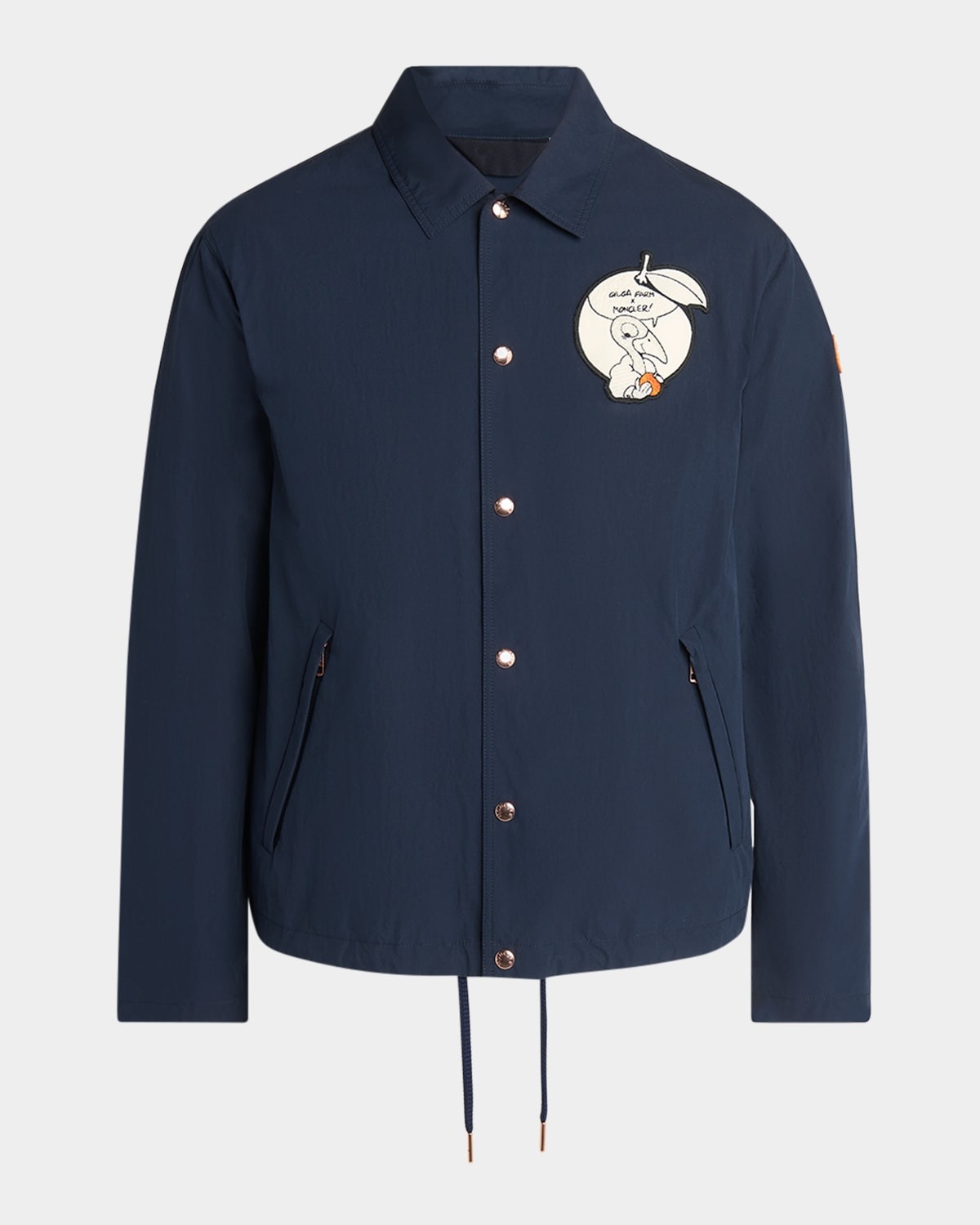 - Inspired by workwear, the Moncler x Gilga Farm by Donald Glover "Satsuma" jacket is embroidered with comic book-style patches - Approx. 27.95"L from shoulder to hem - Crafted from cotton and nylon canvas - Point collar - Long sleeves - Two side zip pockets - Drawstring hem - Loose fit - Nylon/polyamide/cotton - Lining: Nylon - Made in Romania