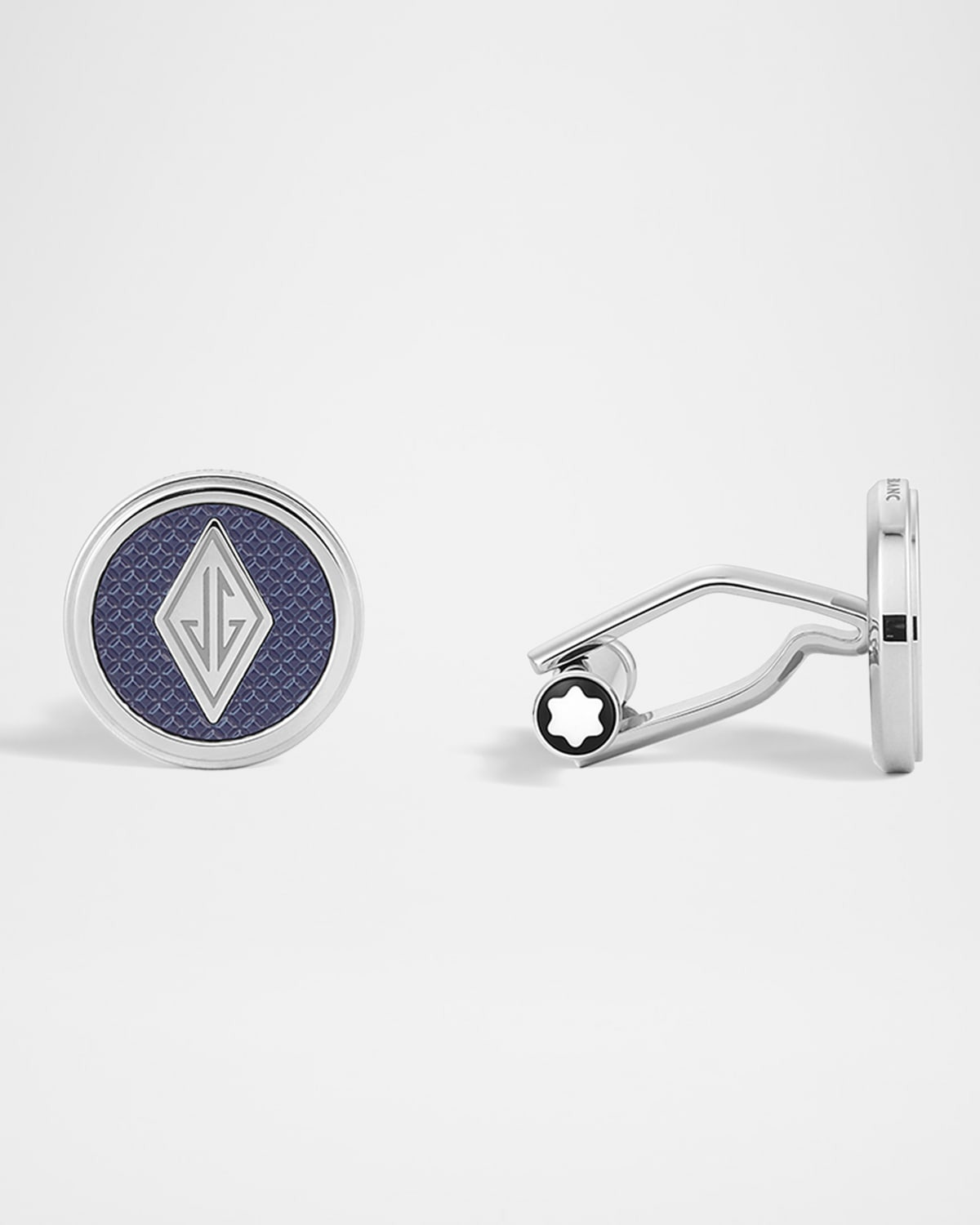 - Montblanc cufflinks from the Great Characters Homage to The Great Gatsby collection - Stainless steel - Center motif inspired by The Great Gatsby's logo - Blue laquer inlay - Clip closure - Spot clean - Made in Germany