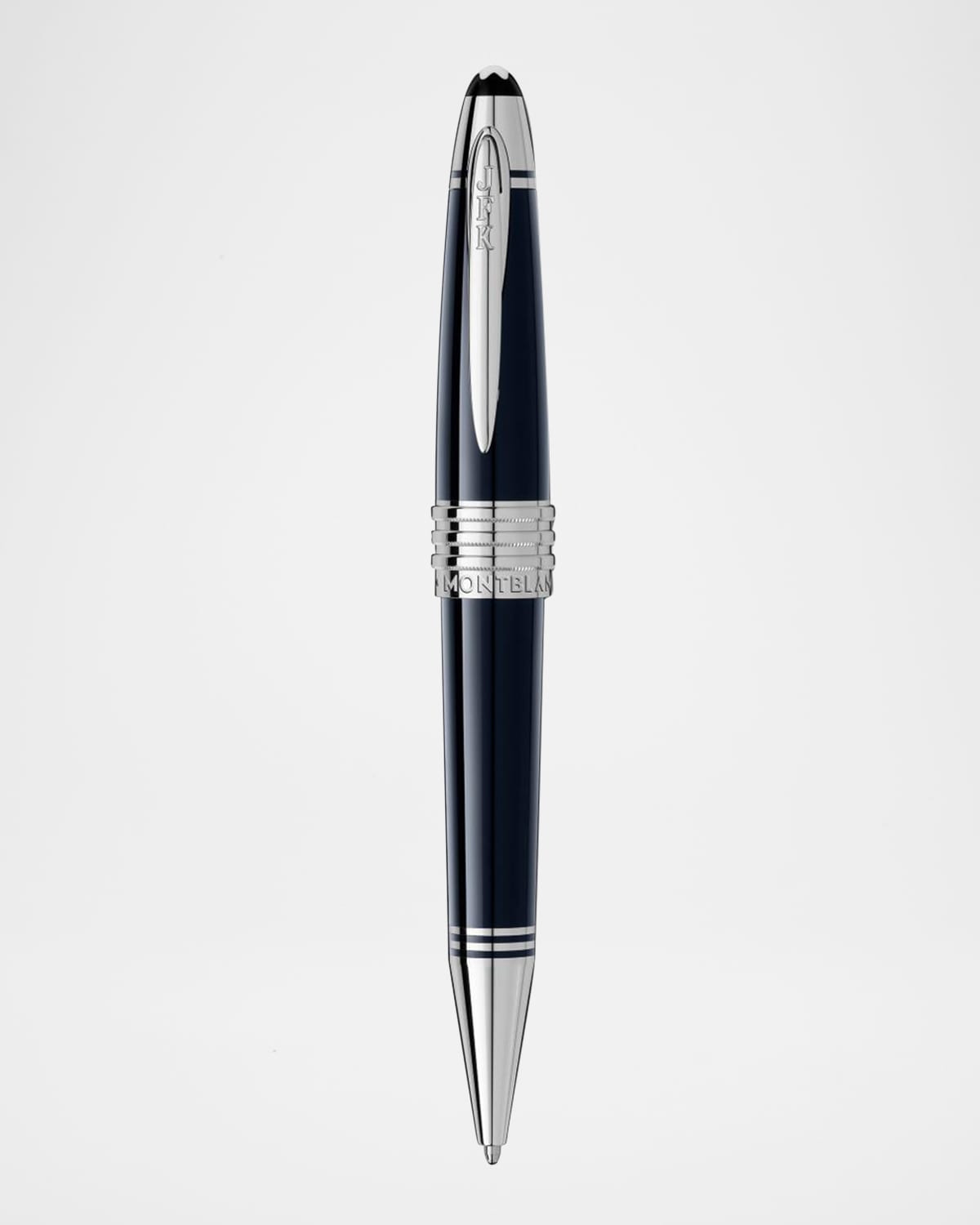 Montblanc John F. Kennedy ballpoint pen from the Special Edition Great Characters collection. Blue precious resin refers to both JFK's time in the U.S. Navy and the famous Ivy League style. JFK engraved on the platinumcoated clip 3 platinumcoated cap rings stand for Kennedy's three brothers. C Crowned by the Montblanc emblem in precious resin. 1.65cm X 14.35cm. Made in Germany.