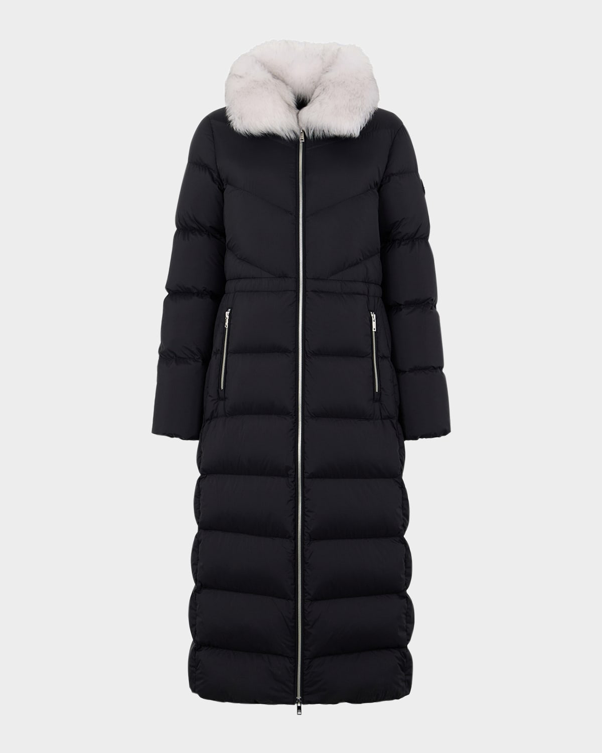 Belle Dune Long Down Puffer Jacket with Removable Shearling Collar