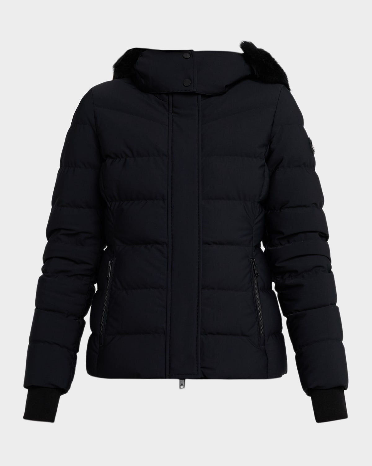 Crafted in Nyluxe with a matte finish, the "Betta" puffer jacket by Moose Knuckles is filled with premium duck down and features genuine dyed shearling (Spain) trim. Waterrepellent and windresistant Hooded neckline with snap closure Long sleeves with ribknit cuffs Signature metal logo plaque on the left sleeve Side zip pockets Slim fit Hem sits at the hip Twoway zipfront with snap placket Nylon/polyamide Fill: Down/feather Lining: Recycled nylon Trim: Fur Dry clean; remove detachable trims before cleaning. Imported