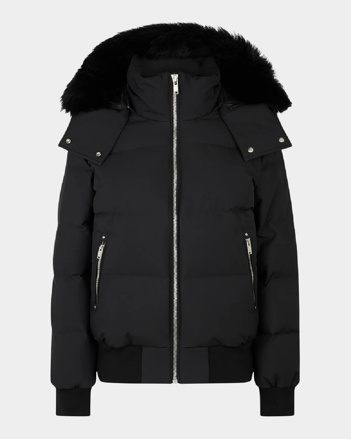 Cloud Bomber Jacket with Detachable Hood and Shearling Trim