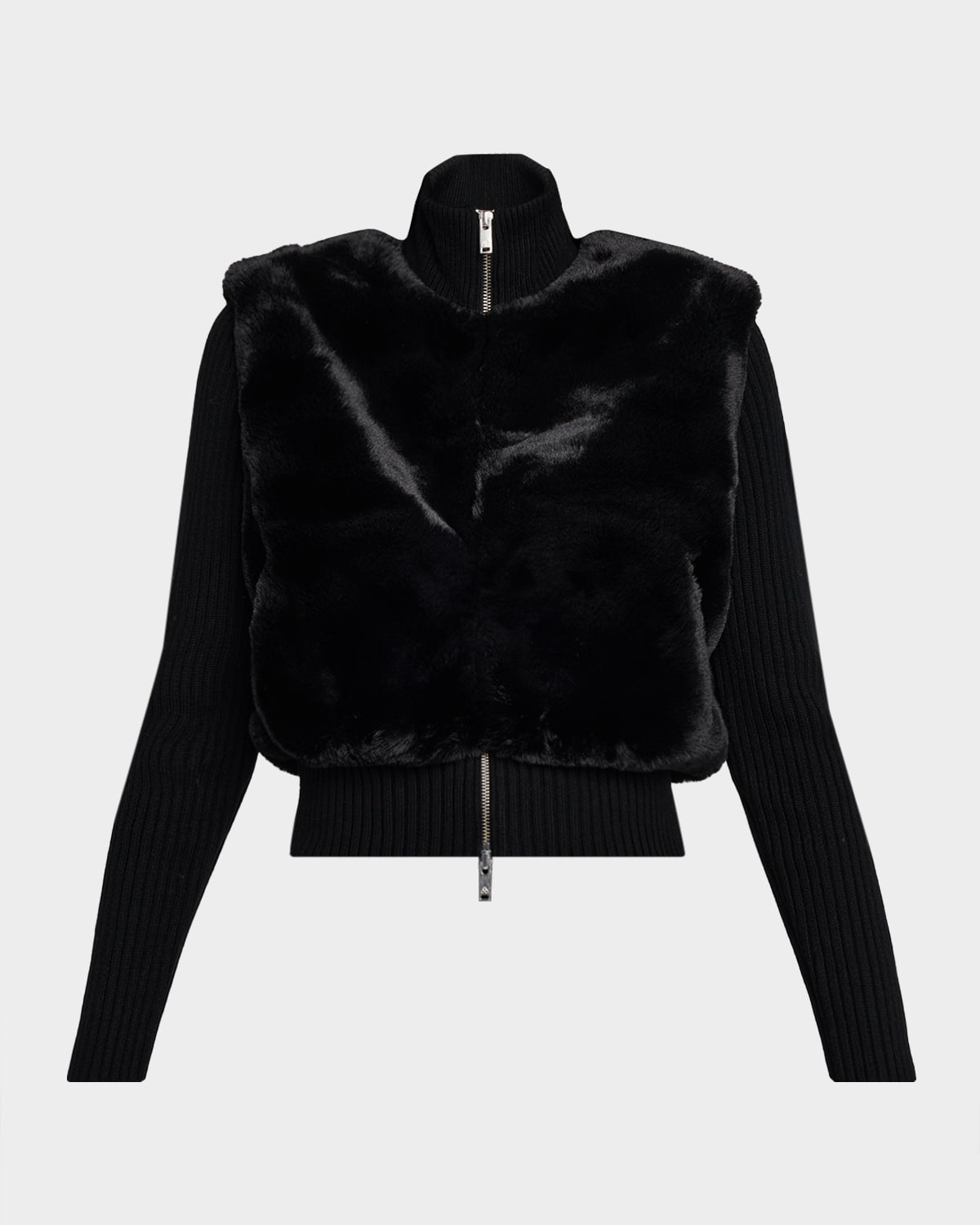 Crafted in plush faux fur, the "Dua" bunny sweater jacket by Moose Knuckles features ribbed trim for comfort without compromising performance. Stand collar Long sleeves Signature metal logo plaque on the left sleeve Side pockets Slim fit Ribbed hem Twoway zipfront Nylon/polyamide Dry clean only Imported