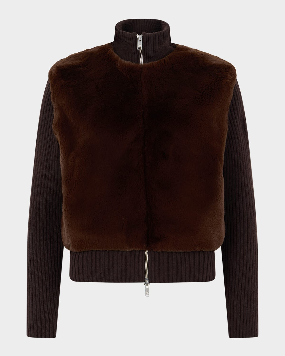 Crafted in plush faux fur, the "Dua" bunny sweater jacket by Moose Knuckles features ribbed trim for comfort without compromising performance. Stand collar Long sleeves Signature metal logo plaque on the left sleeve Side pockets Slim fit Ribbed hem Twoway zipfront Nylon/polyamide Dry clean only Imported