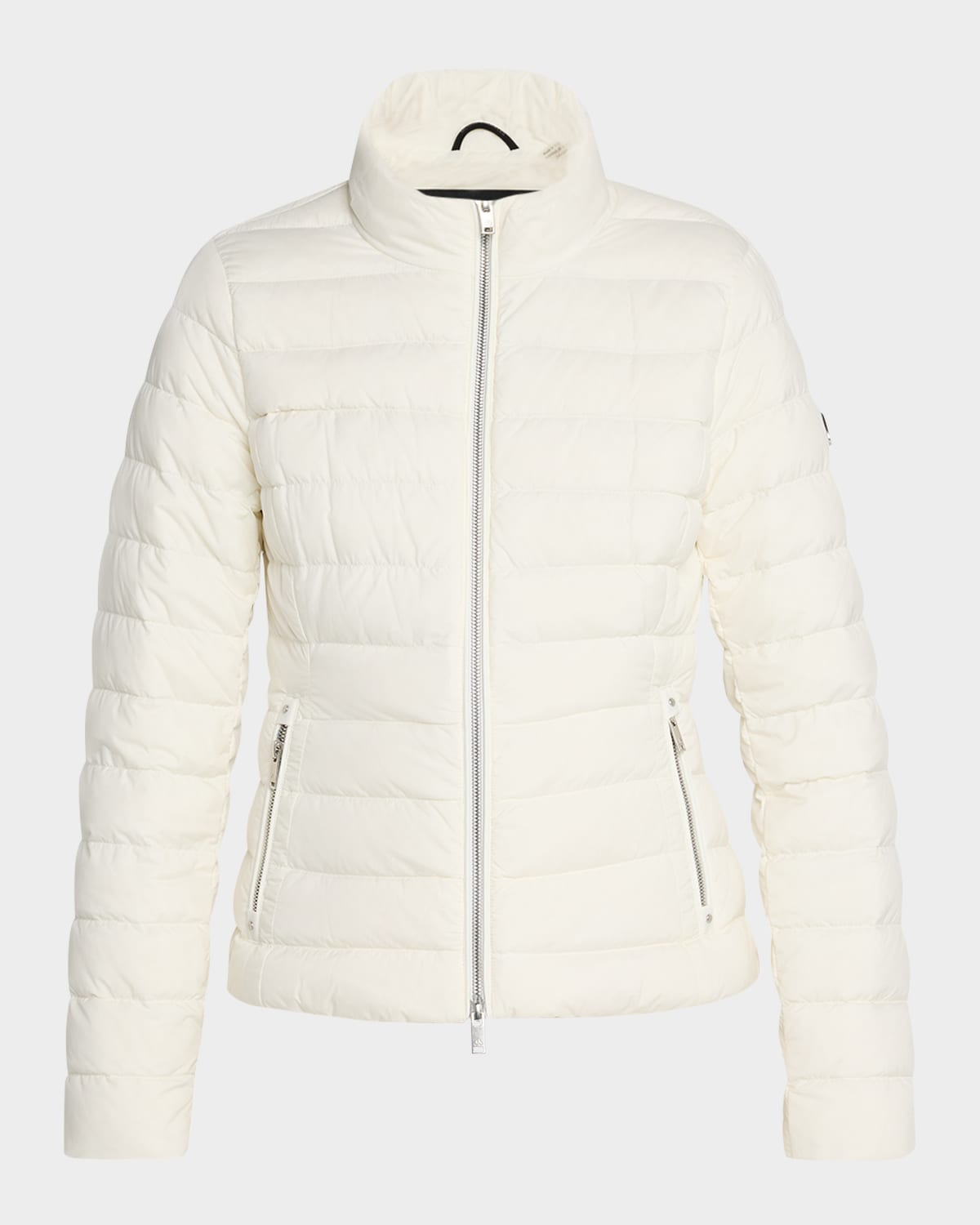 - Moose Knuckles "Gemma" quilted Air Down puffer jacket - The Air Down Collection offers warmth and style without adding bulk. - Water and wind-resistant - Stand collar - Long sleeves; approx. 33.5"L - Metal logo patch at left sleeve - Angled side zip pockets - Slim fit - Hip-length - Two-way zip-front - Nylon/polyamide - Fill: Down/feather - Lining: Nylon - Machine wash cold - Imported