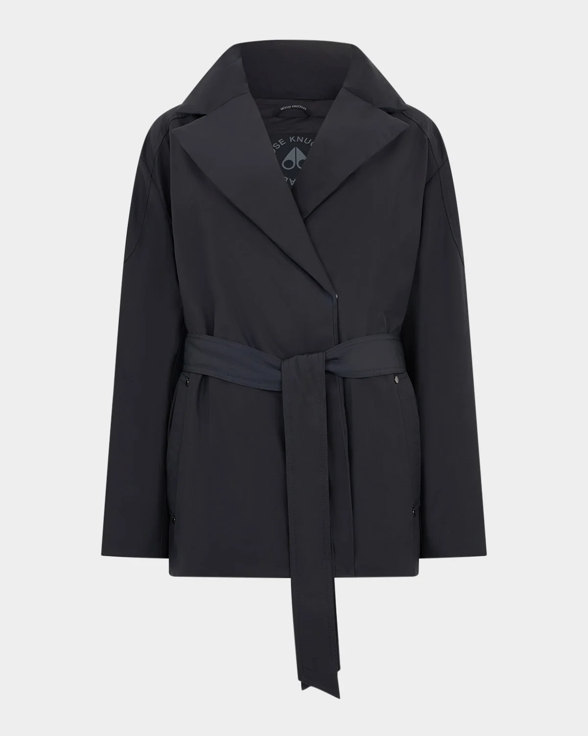 Featuring a timeless silhouette, the "Lonsdale" wrap jacket by Moose Knuckles is insulated with premium down and boasts a selftie belt for a personalized fit. Coldweather protection down to 32°F. Water and windresistant Notch lapels Long sleeves Signature metal logo plaque on the left sleeve. Side welt pockets Relaxed fit Hem falls to the hip Concealed snapfront Polyester Fill: Down/feather Lining: Nylon Machine wash cold Imported