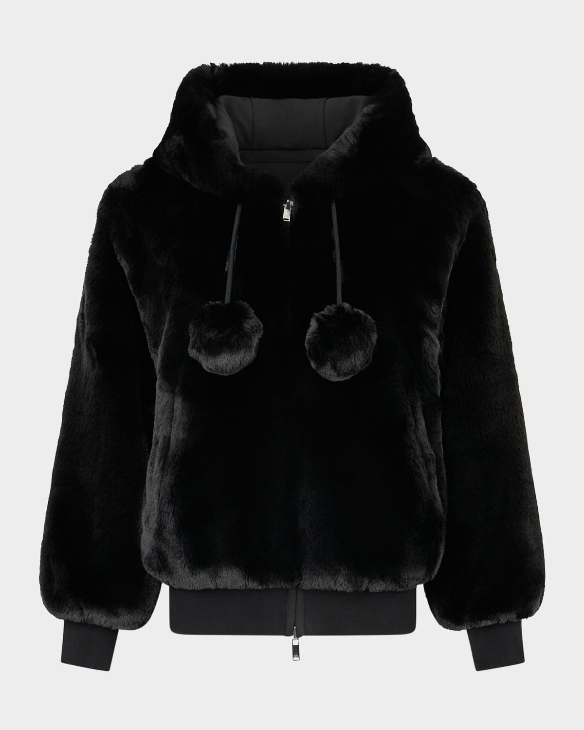 Crafted in plush faux fur with a reversible weatherresistant side, the "Mealy" bunny jacket features removable faux fur pompoms for cozy, versatile styling. Coldweather protection down to 14°F. Hooded neckline; twoway zipfront Long sleeves with ribknit cuffs Signature metal logo plaque on the left sleeve Side slip pockets Classic fit Ribknit hem Cotton/polyester Dry clean only Imported