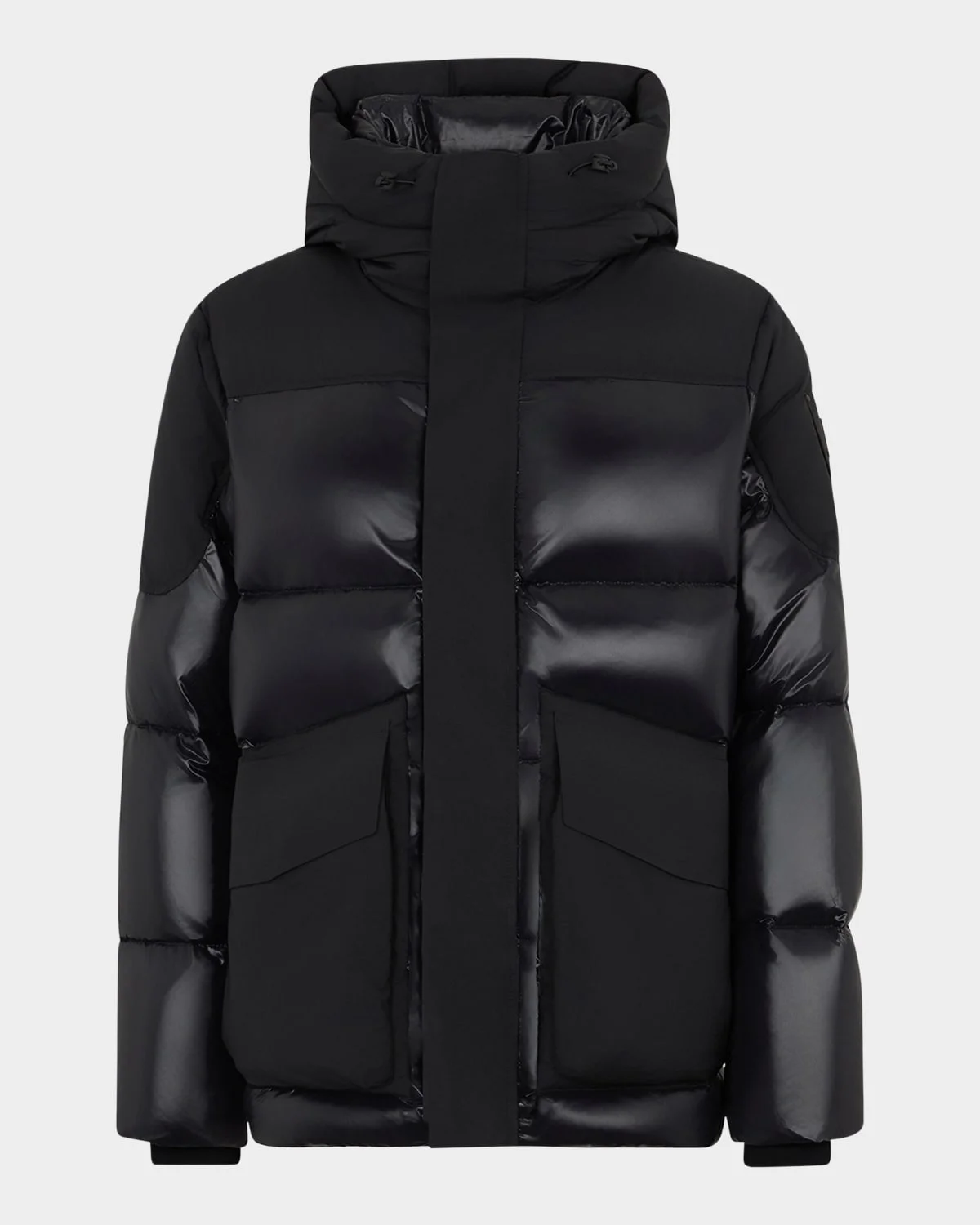Sleek meets highperformance with the "Briar 3Q" puffer jacket by Moose Knuckles, featuring contrasting fabric panels and hyperwarm down- it's the most stylish way to take on the winter. Drawcord hooded neckline Snap concealed twoway zip front Long sleeves Metal logo on left sleeve Hip flap patch pockets Regular fit Hip length Eclon® nylon Lining: Nylon Fill: Feather/Down Dry clean, machine wash cold Imported