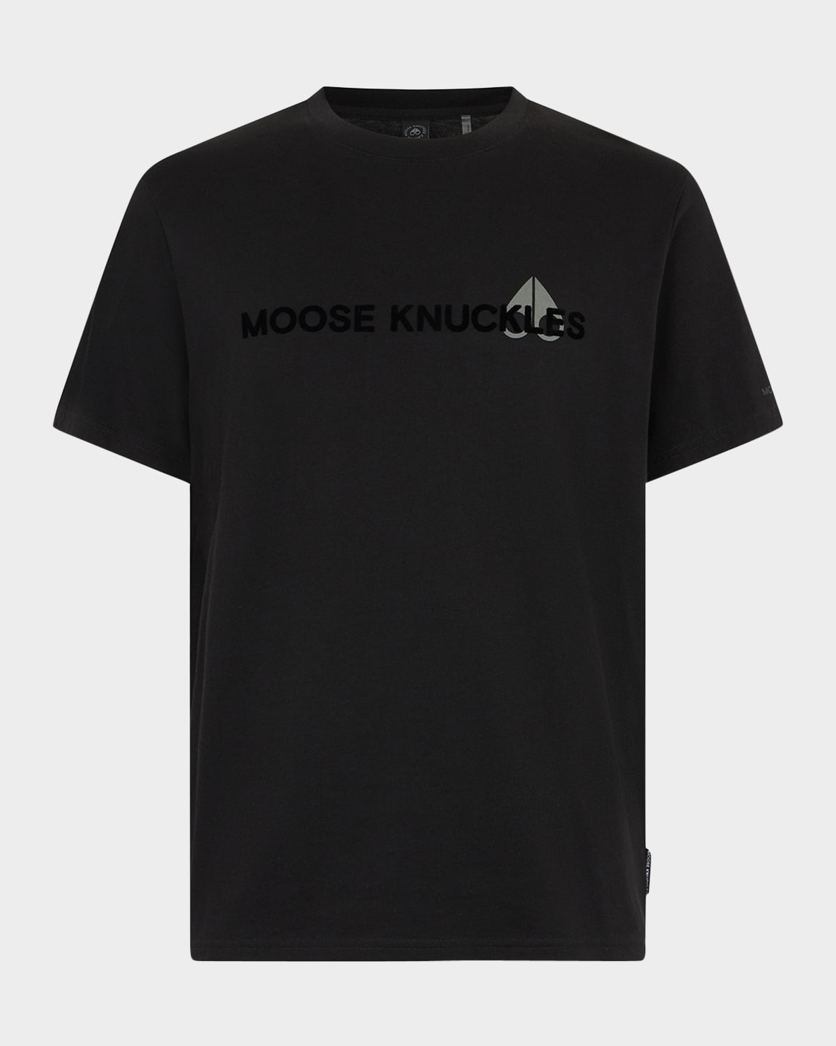 - Moose Knuckles "Conway" T-shirt with textured logo details - Approx. 27"L from shoulder to hem - Crew neckline - Short sleeve; approx. 17.5"L - Regular fit - Pullover style - Pima cotton - Unlined - Machine wash cold, line dry - Made in Peru