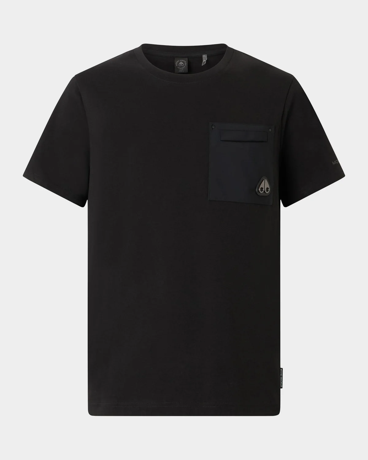 Comfortable and classic like a beloved Tshirt, but amplified by Moose Knuckles, the "Dalon" shirt is recognizable by the tonal pocket and logo on the front. Crew neckline Short sleeves Relaxed fit Pullover style Cotton/Eclon® nylon Dry clean, machine wash line dry Made in Peru