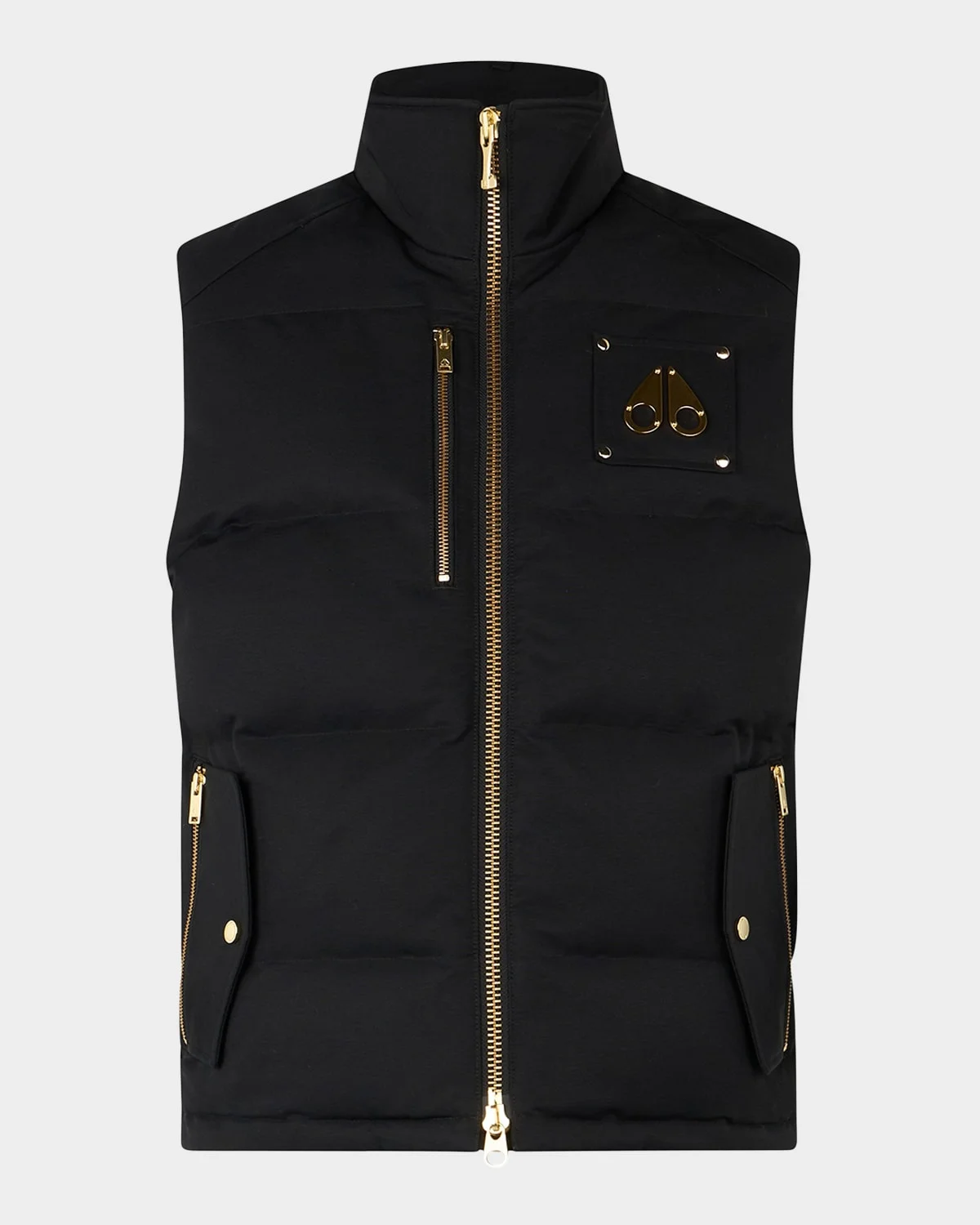 Stay warm with the Moose Knuckles "Westmount" vest, filled with cozy 80/20 down and a weatherresistant shell. Protection Rating Level 2: Cold - Your everyday winter workhorse Water repellent and wind resistant Stand collar Sleeveless Twoway zip front Metal logo chest patch on the left Zip pocket on the right Side zip/flap pockets Cotton/nylon/polyester Fill: duck down/feather Dry clean, machine wash cold Imported