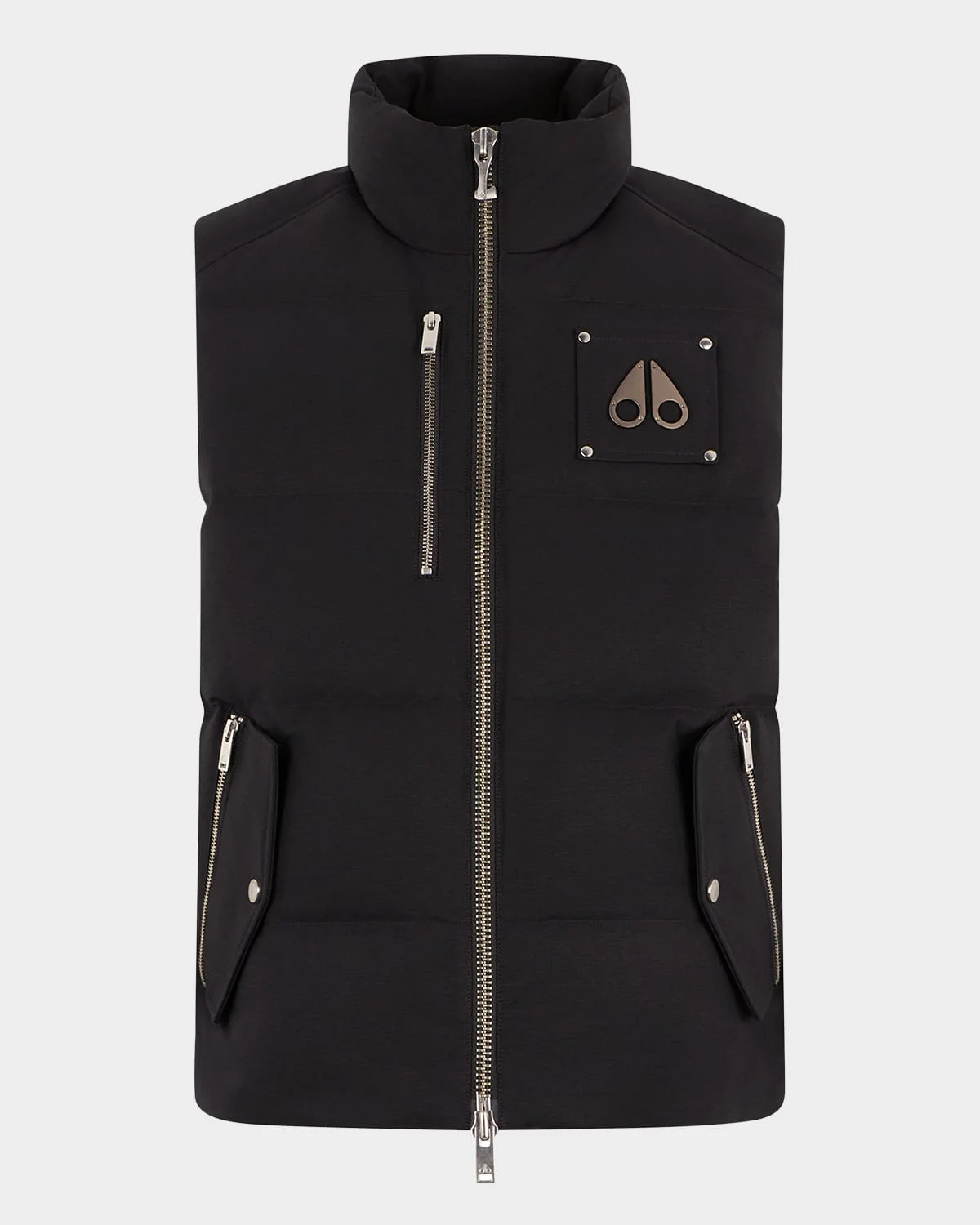 Stay warm with the Moose Knuckles "Westmount" vest, filled with cozy 80/20 down and a weatherresistant shell. Stand collar Sleeveless Twoway zipper Zip pocket on the right Side zip/flap pockets Cotton Lining: Recycled nylon Fill: Duck down/feather Dry clean, machine wash cold Imported
