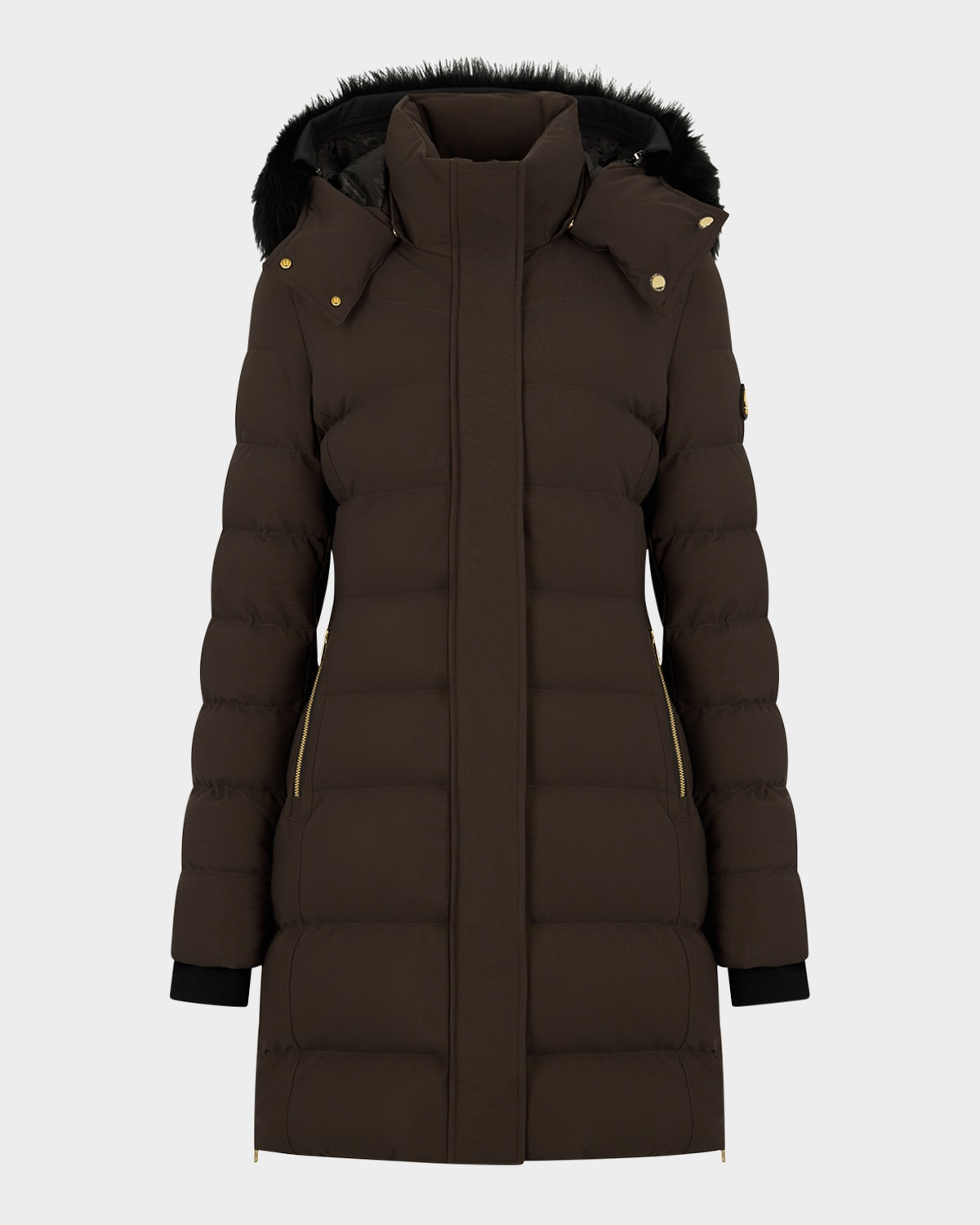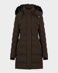Crafted in Nyluxe with a matte finish, the "Watershed 3" parka from the Moose Knuckles Gold Series collection features a hood with faux fur trim that can be removed for versatile styling. Coldweather protection down to 4°F. Waterrepellent and windresistant Stand collar Long sleeves with storm cuffs Signature metal logo plaque on the left sleeve Zip pockets Slim fit Side zip vents for added movement Twoway zipfront Amni® nylon Fill: Down/feather Lining: Polyester Trim: Faux fur Machine wash cold Imported