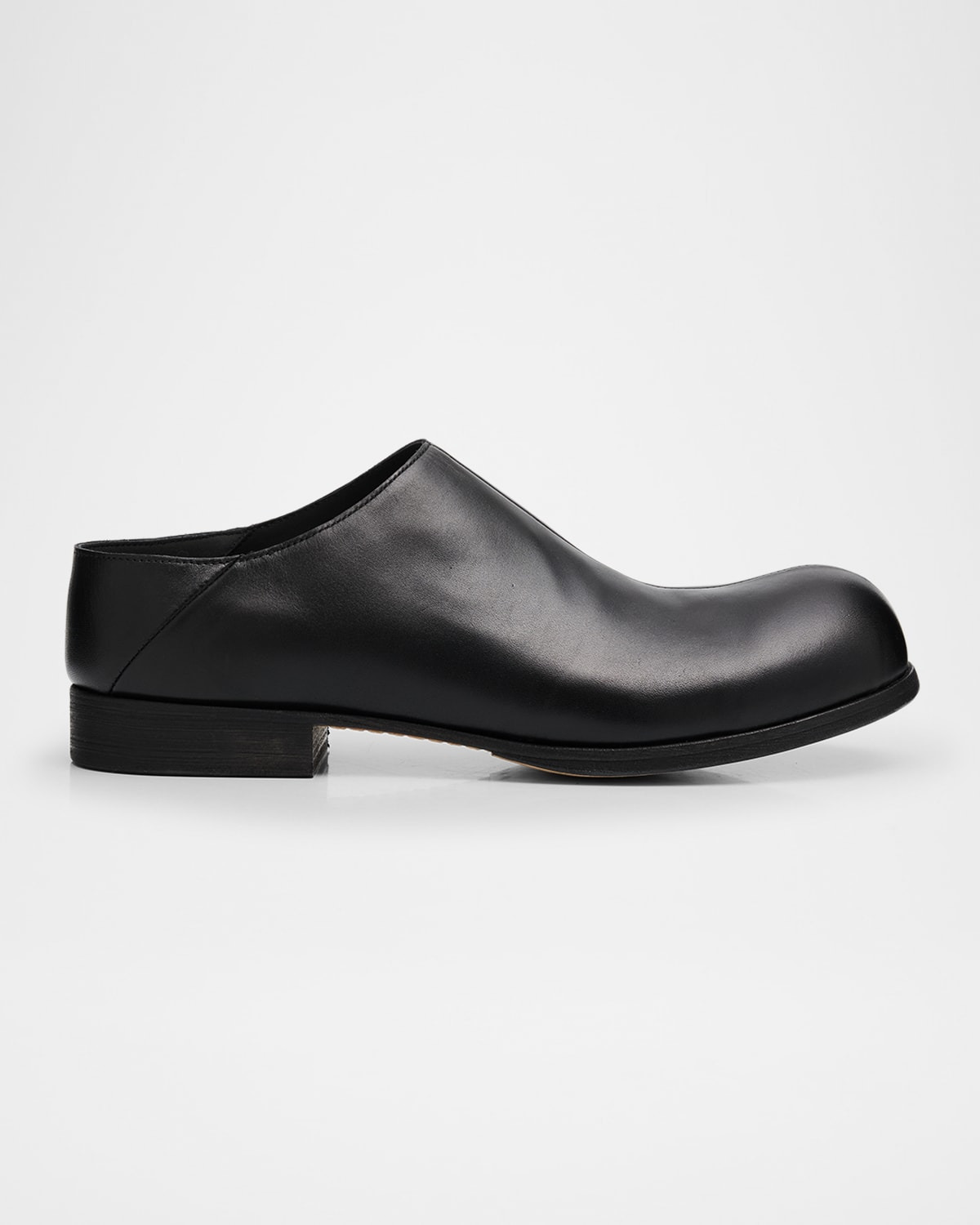 - Moschino loafers in smooth calf leather with split stitching along the center - Stacked heel - Round toe - Leather lining - Slip-on style - Made in Italy