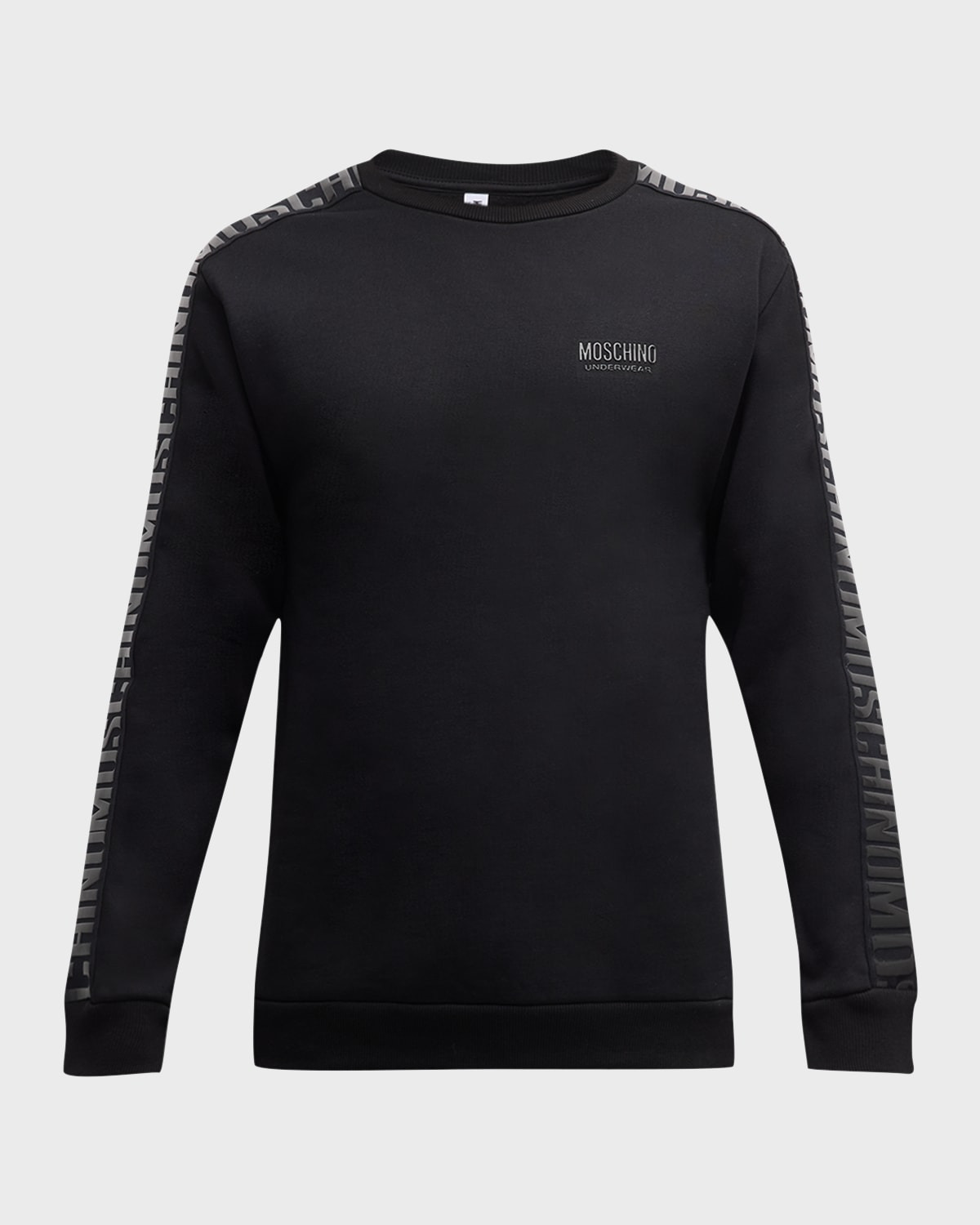 - Moschino sweatshirt with matte logo lettering down sleeves - Crew neckline - Long sleeves - Ribbed cuffs and waistband - Pullover style - Cotton/modal - Unlined - Machine wash cold - Made in Bulgaria - Model is 6'1"/185cm.