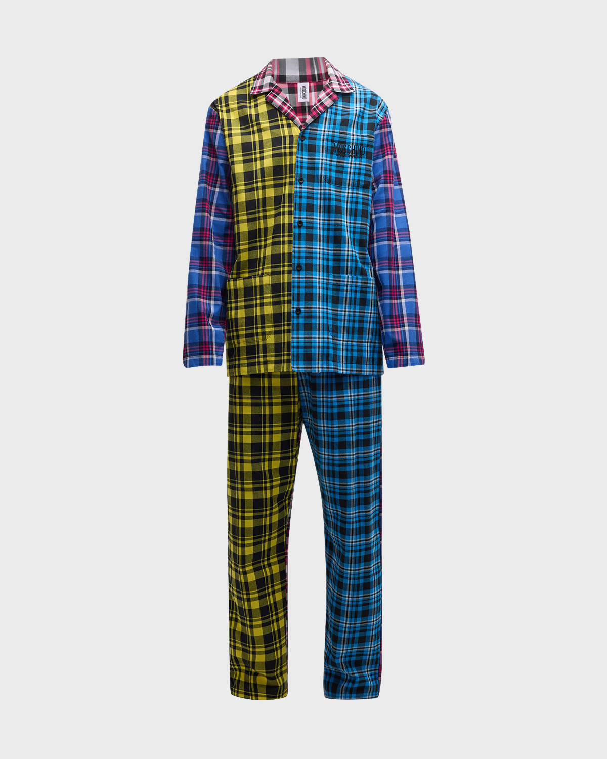 - Moschino pajama set in colorblocked plaid - Notched collar; button front closure - Chest patch pocket - Long sleeves - Straight-leg trousers - Relaxed fit - Cotton - Machine wash cold - Imported - Model is 6'1"/185cm.