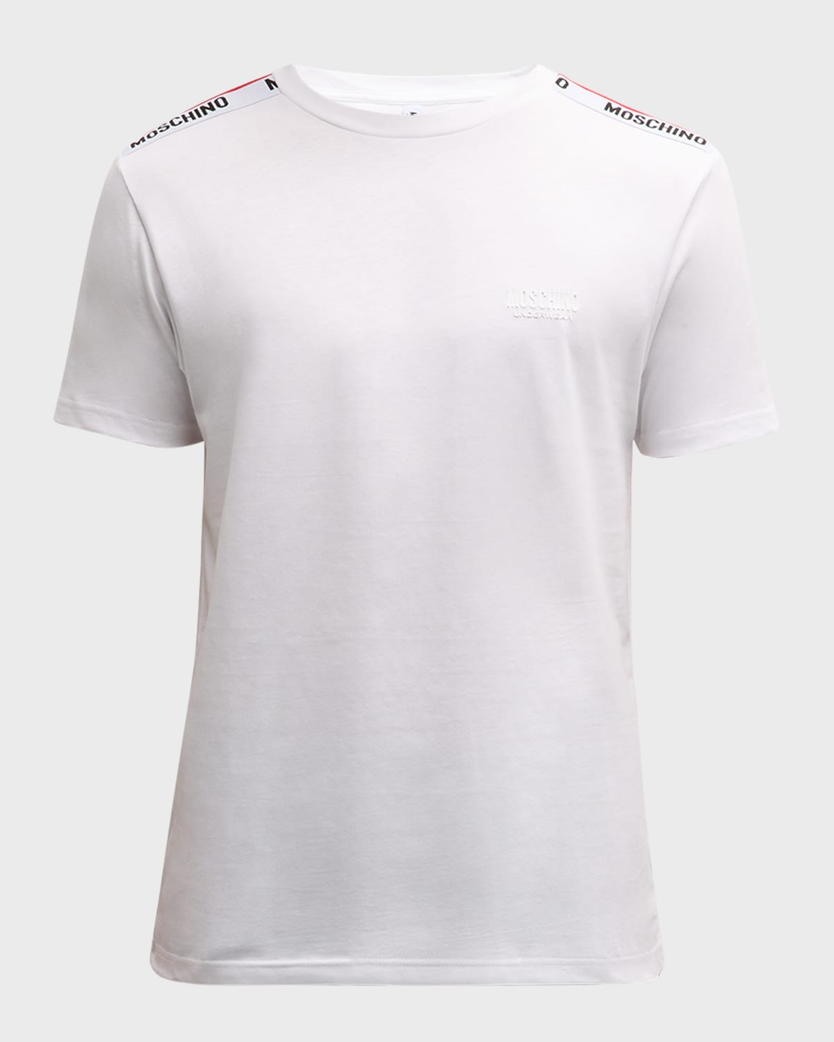 - Moschino T-shirt with shoulder taping - Crew neckline - Tonal logo at chest - Short sleeves - Pullover style - Cotton - Made in Italy - Model is 6'1"/185cm.