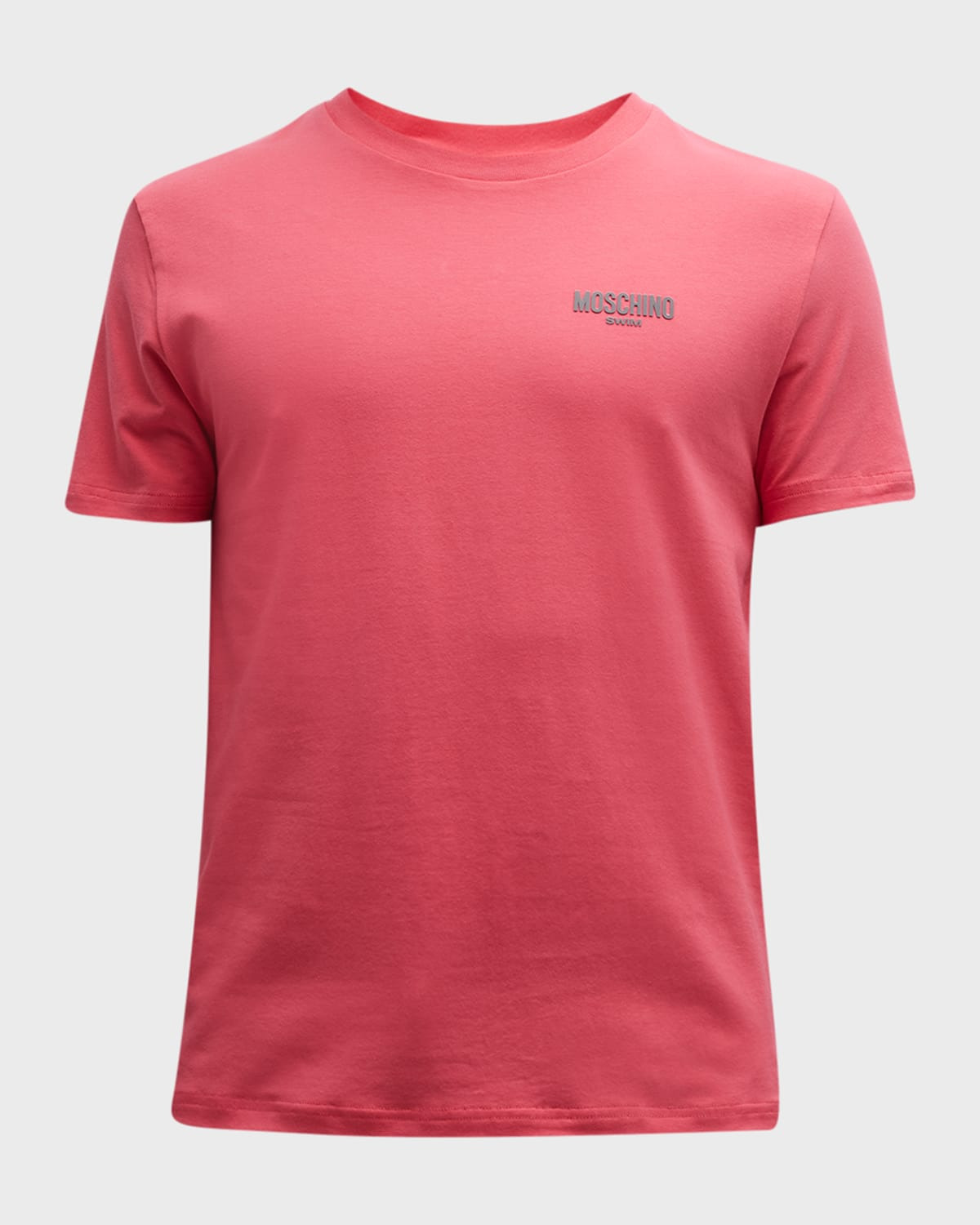 - Moschino T-shirt with swim logo at chest - Crew neckline - Short sleeves - Pullover style - Cotton/elastane - Unlined - Machine wash cold - Made in Bulgaria - Model is 6'1"/185cm.