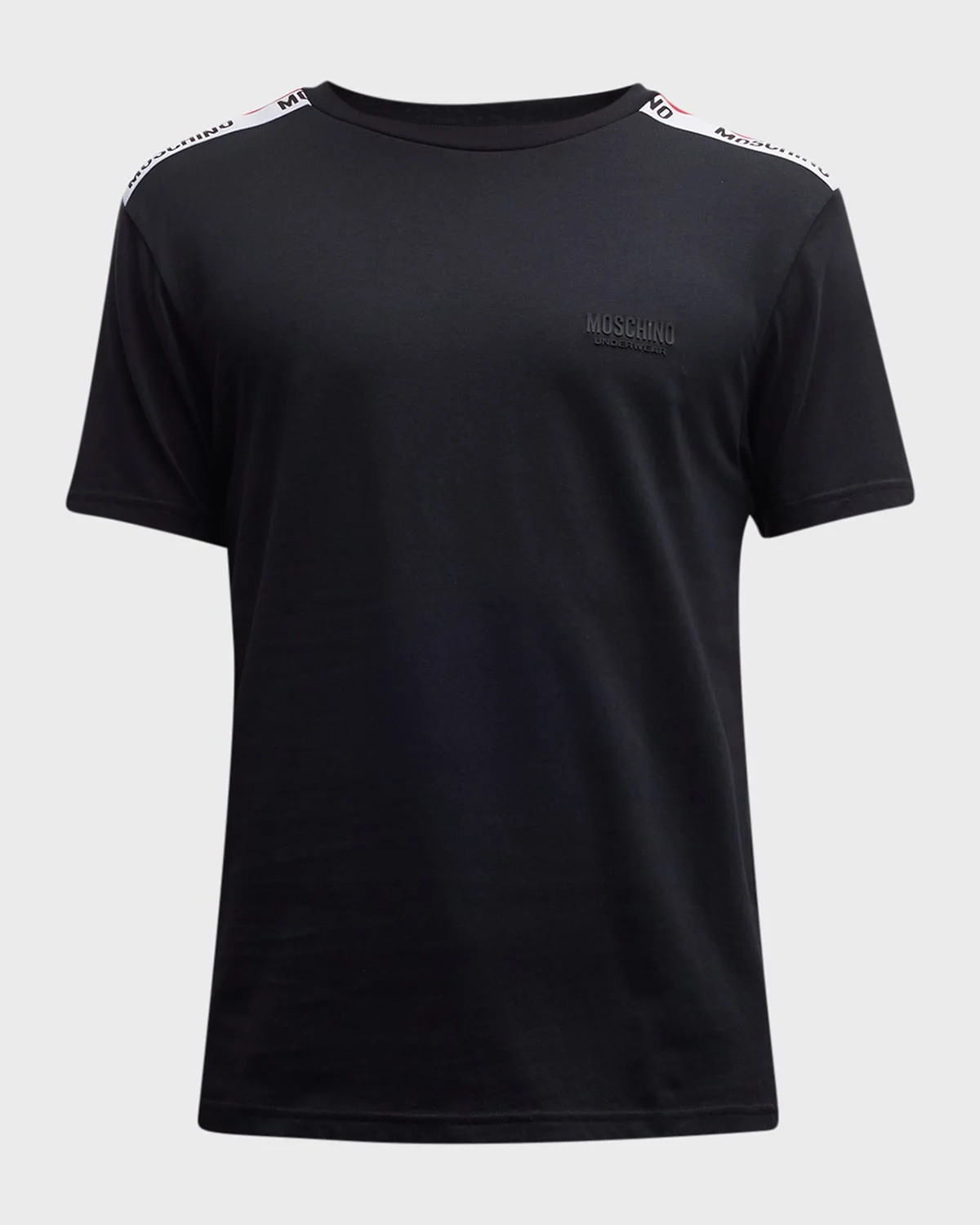 - Moschino T-shirt with logo taping at shoulders - Crew neckline - Short sleeves - Pullover style - Cotton - Unlined - Machine wash cold - Made in Greece - Model is 6'1"/185cm.