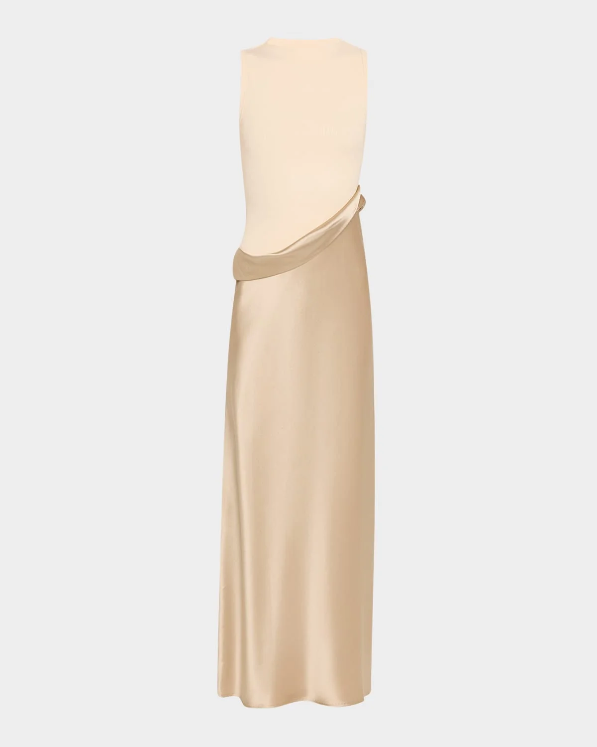 - Nanushka "Cobee" combo dress featuring a ribbed-jersey bodice finished with a satin skirt - High neckline - Sleeveless - Draped waist sash - Slip silhouette - Full length - Slipover style - Triacetate/polyester/cotton - Machine wash warm or dry clean - Imported