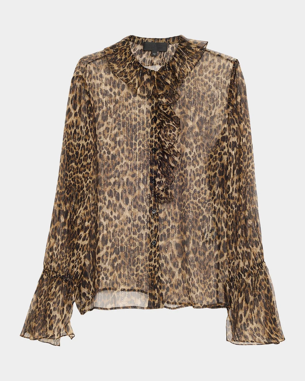 Cecily Metallic Leopard-Print Silk Ruffle Shirt