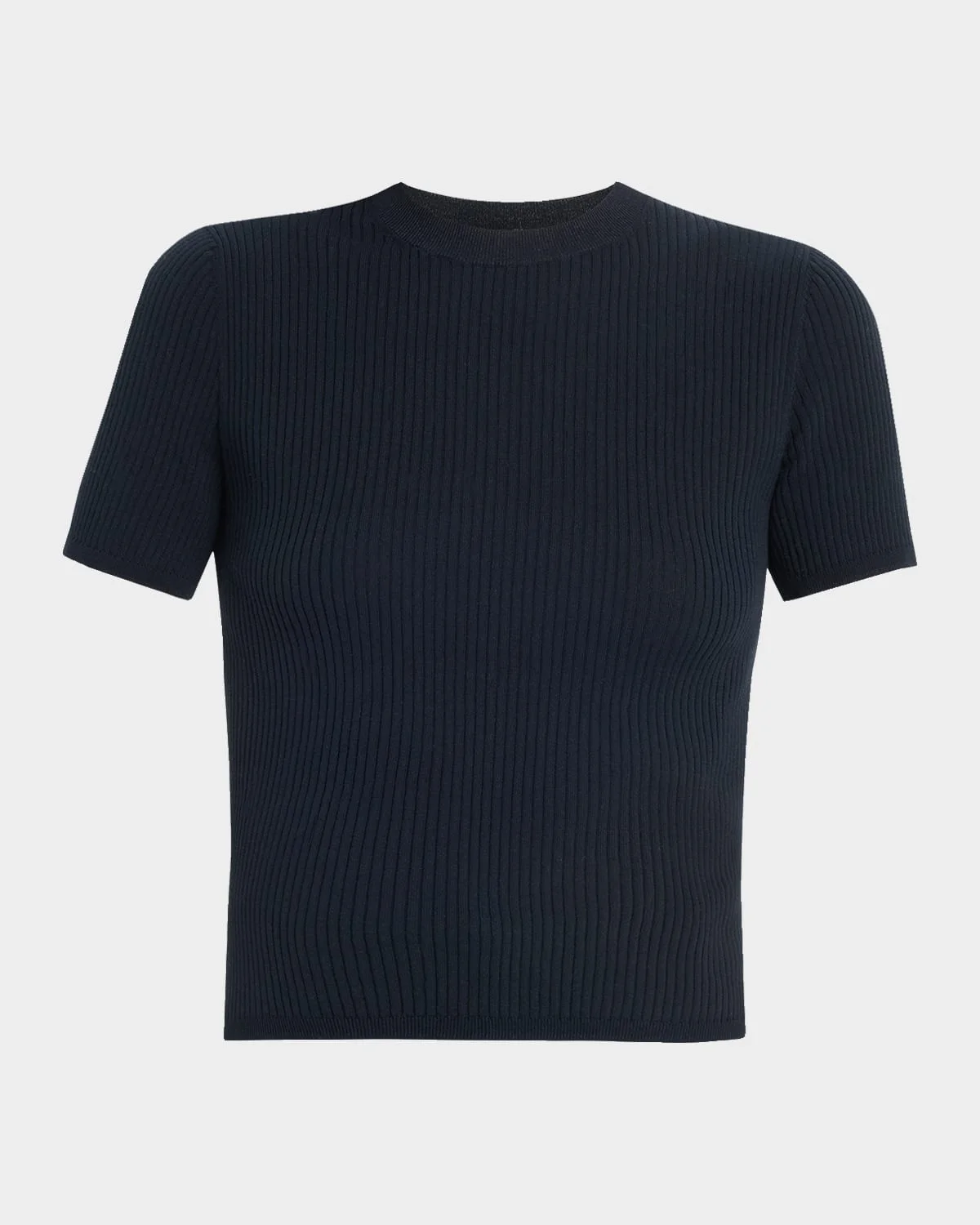 The "Dorset" sweater & nbsp;from Nili Lotan is crafted from cotton ribbed knit Crew neckline Short sleeves Slim fit Hip length Ribbed cuffs and hem Pullover style Cotton Dry clean Imported SIZE & FITModel measurements: 5 & apos;10" tallModel is wearing a US size 4/Small