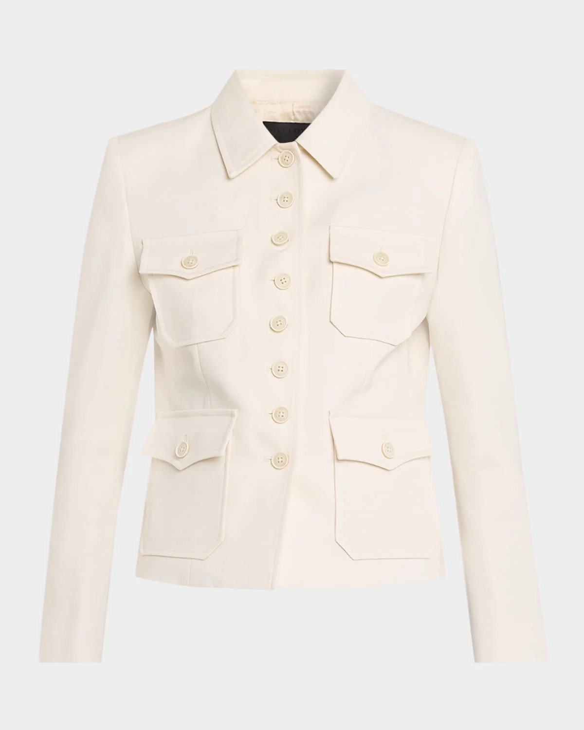 Nili Lotan "Jamison" jacket Spread collar; button front Long Sleeves; button cuffs Four flap-buttoned pockets Back walking slit Virgin wool Made in USA from imported materials