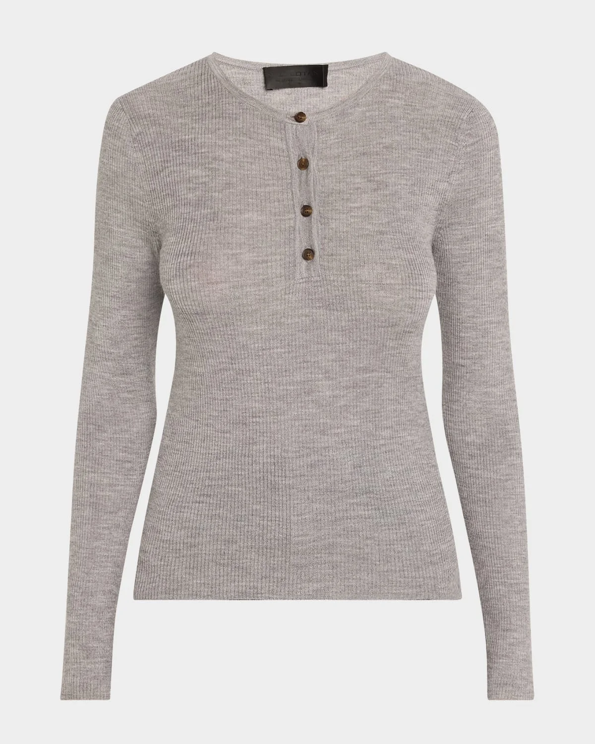 Nili Lotan "Klarise" henley sweater Crew neckline; fourbutton placket Long sleeves Slim fit Pullover style Merino wool/silk Made in USA from imported materials