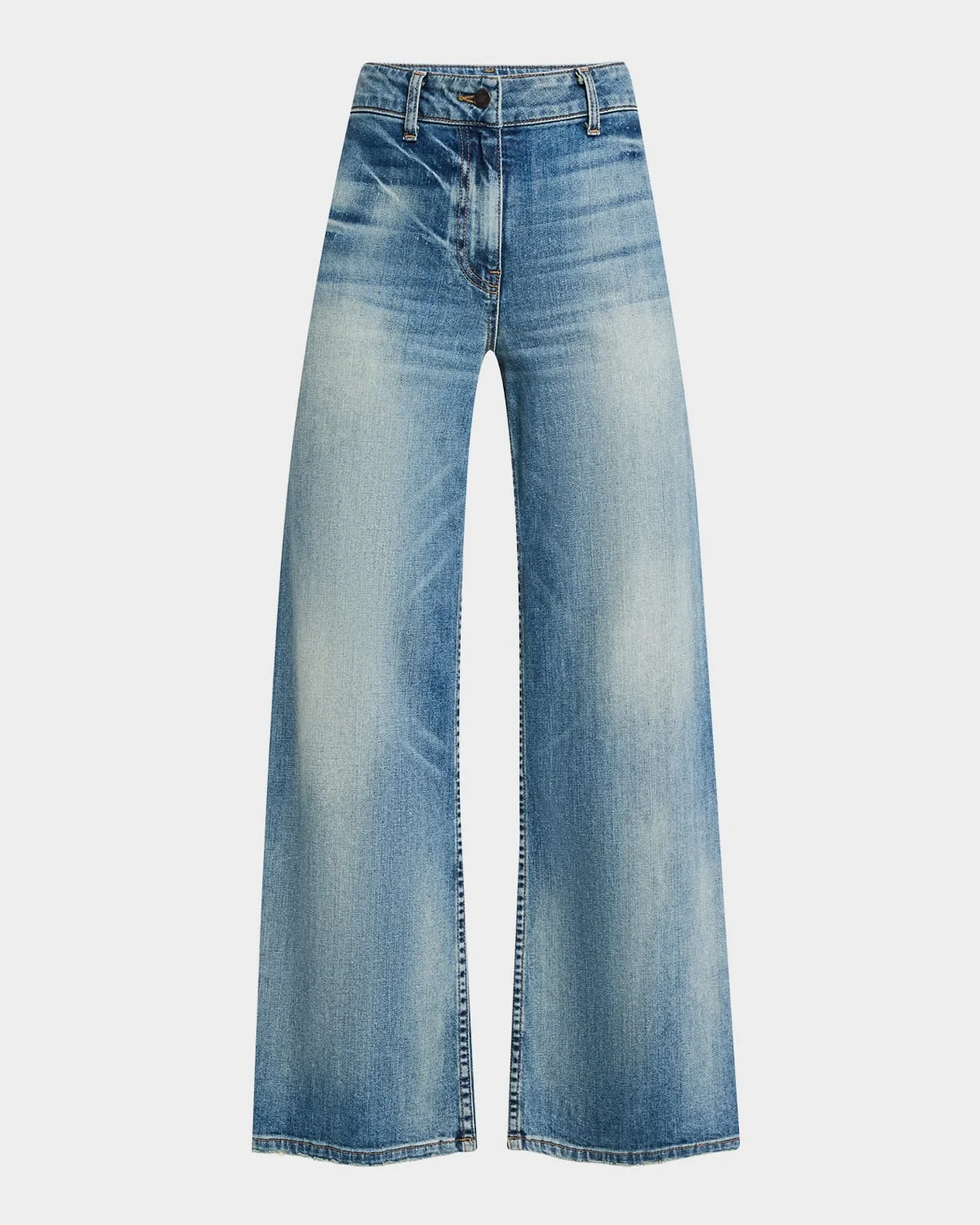 - Nili Lotan "Megan" stretch-denim pants - High rise - Flat front - Back patch pockets - Wide legs - Cropped at the ankle - Button/zip fly; belt loops - Cotton/polyurethane - Made in USA