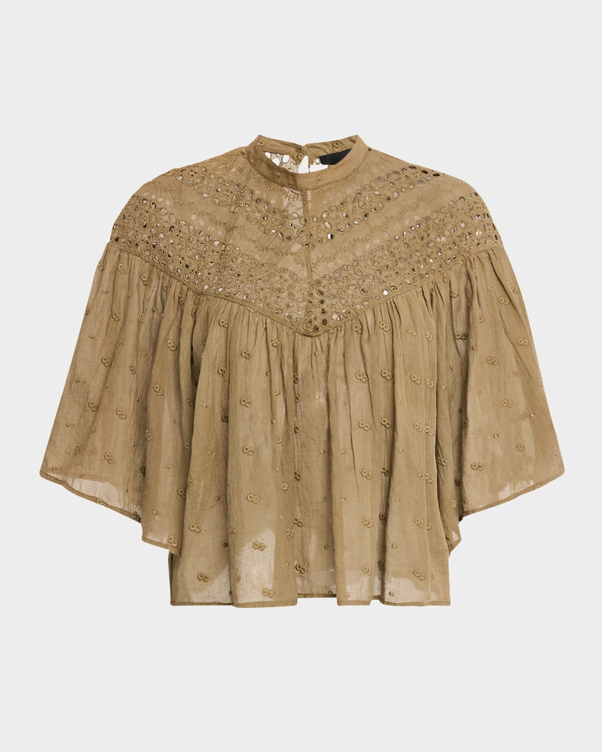 Mikki Eyelet Yoke Washed Cotton Blouse